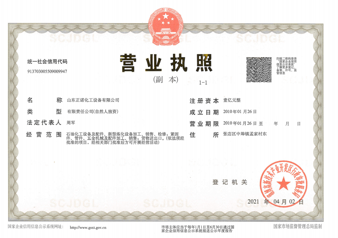 | 公司名称 | 山东正诺化工设备有限公司 | 公司简称 | 山东正诺化工设备有限公司 | 公司网址 | www.sdzenno.cn |