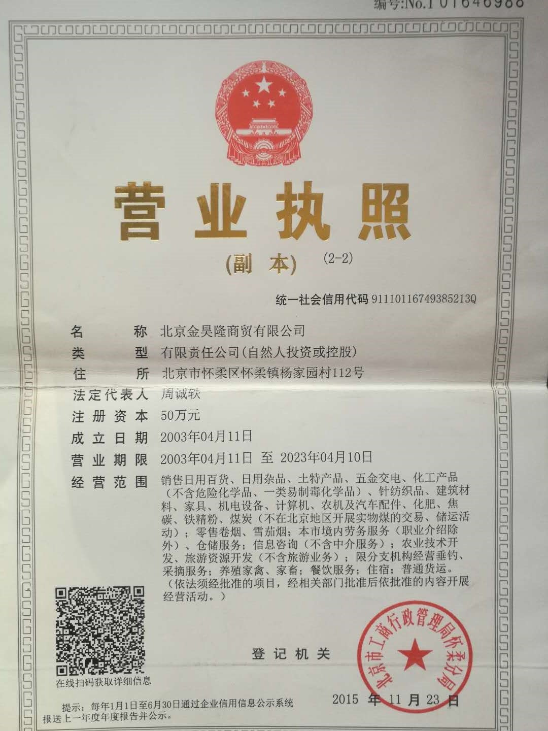 | 公司名称 | 北京金昊隆商贸有限公司 | 公司简称 | 北京金昊隆商贸有限公司 | 公司网址 | |