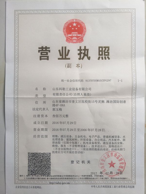 | 公司名称 | 山东科勒工业设备有限公司 | 公司简称 | 山东科勒工业设备有限公司 | 公司网址 | |