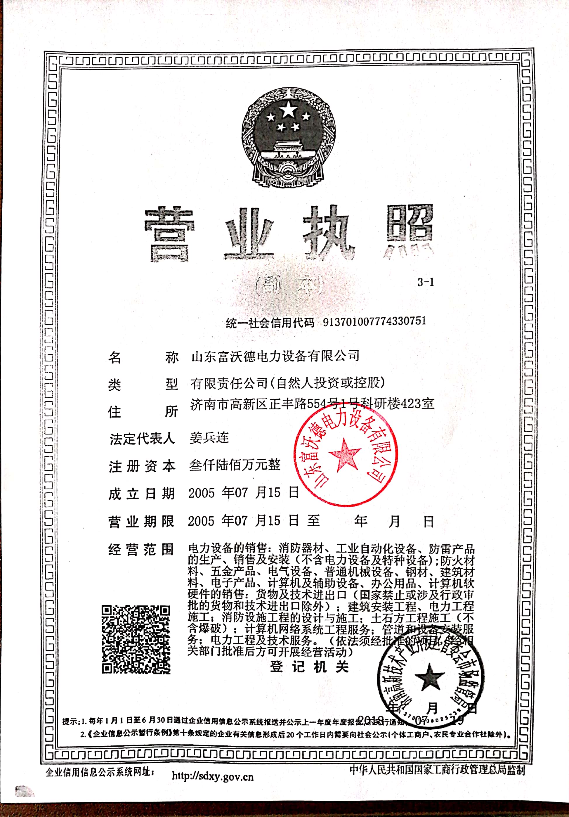 注册地址 | 济南市高新区 | 法定代表人 | 姜兵连 | 注册资本 | 3600万人民币 |
