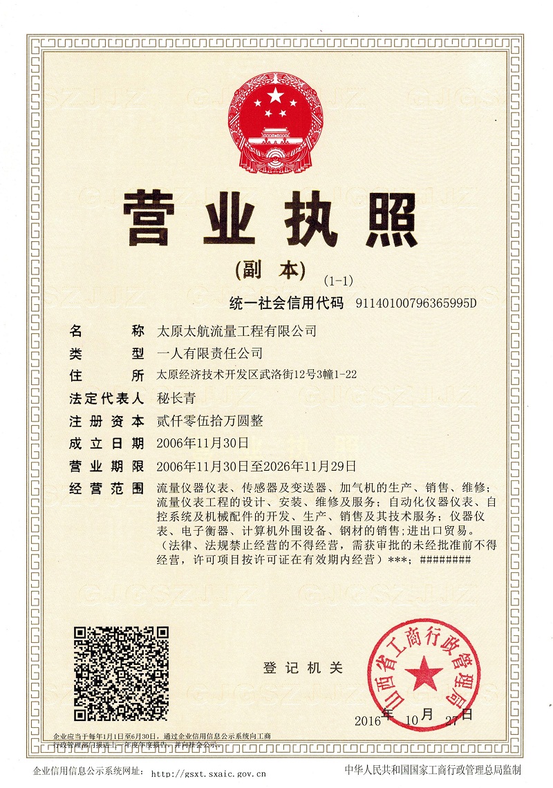 太原太航流量工程有限公司(原太原航空仪表有限公司流量仪表厂)系国有企业改制后组成的高新技术企业,是太原太航科技有限公司的全资子公司。是国内最早、最大的科里奥利质量流量计专业生产制造商,企业通过ISO9001质量体系认证,拥有组织健全、完善、有效运行的质量保障体系。