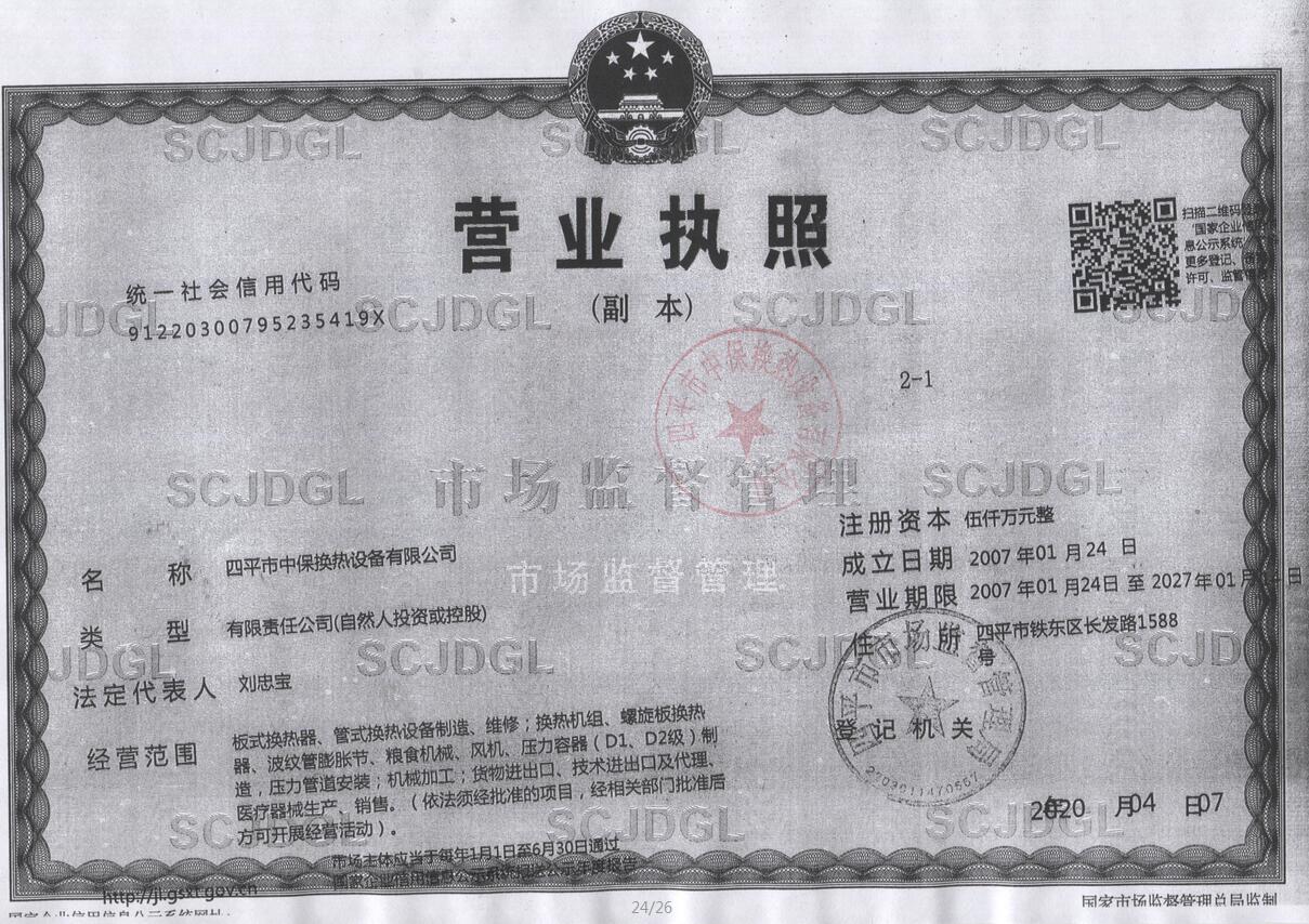 吉林省四平市中保换热器厂是全国大型换热器专业生产厂家之一。多年来一直从事换热设备的研究和开发,具有雄厚的技术力量,齐全的制造和检验、测试设备,以良好的售后服务得到了用户的的好评。四平市中保换热器厂一贯把优质的服务当成是产品质量的一个重要的环节。