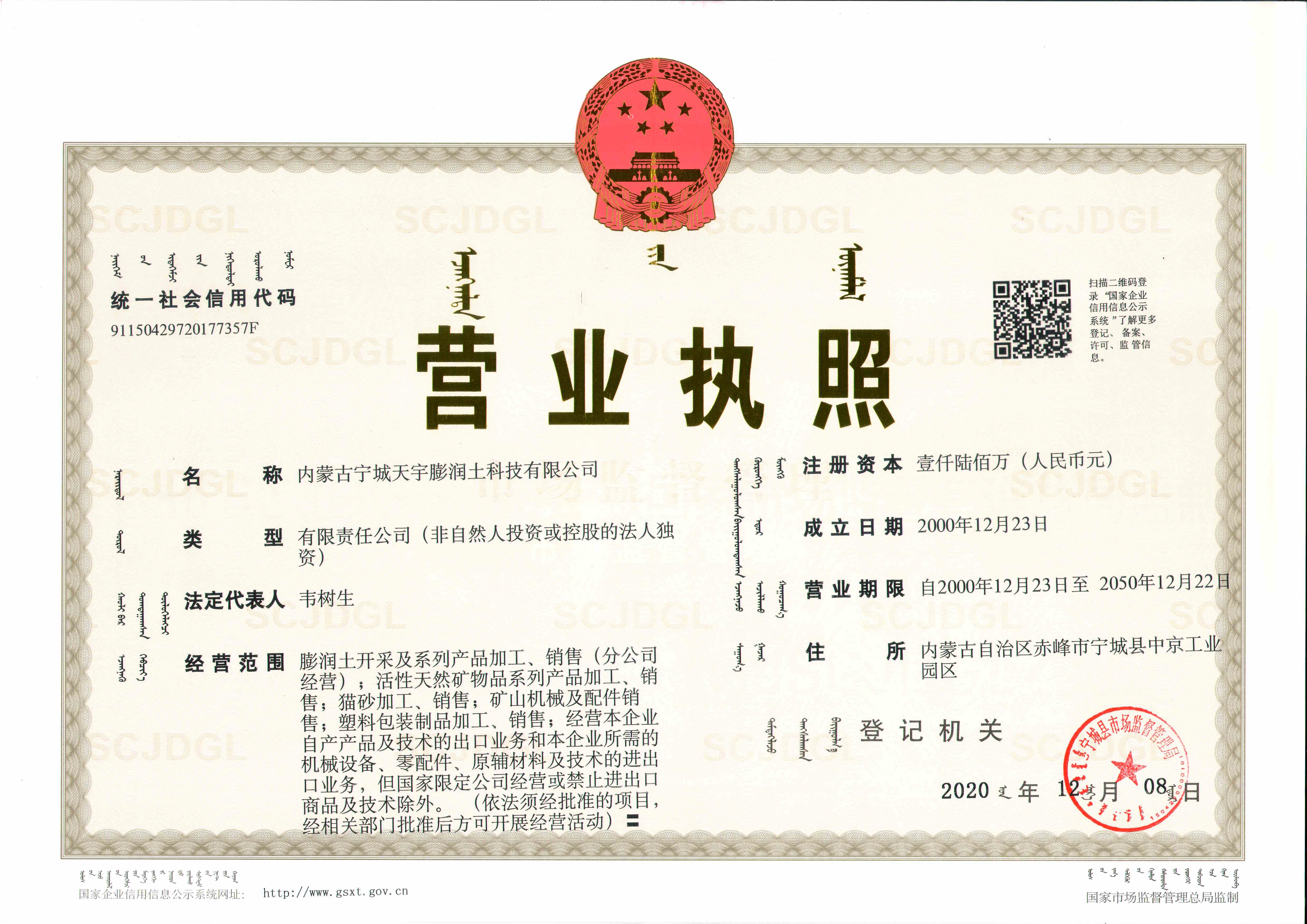 注册地址:内蒙古 赤峰市 宁城县