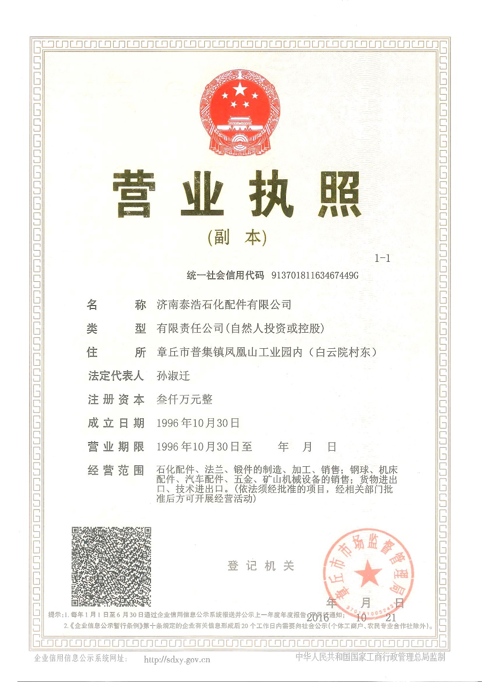 公司是生产水电、石油化工、压力管道等配件的专业厂家,主要生产高、中、低压法兰及锻制管件。公司主要加工设备40余台,产品化学分析、力学性能、金相分析、无损检测等检验检测设备10余台。公司产品质量可靠,工艺先进,技术力量雄厚,检测手段齐全,有严格的内控标准和管理制度。公司已先后通过ISO9001-2008质量管理体系认证,ISO14001-2004环境管理体系认证,GB/T28001-2011职业健康安全管理体系认证,于2013年6月19日取得中华人民共和国特种设备(压力管道元件A级),制造许可证,连续多年获得济南市“守合同重信用”单位称号,得到了用户的好评。