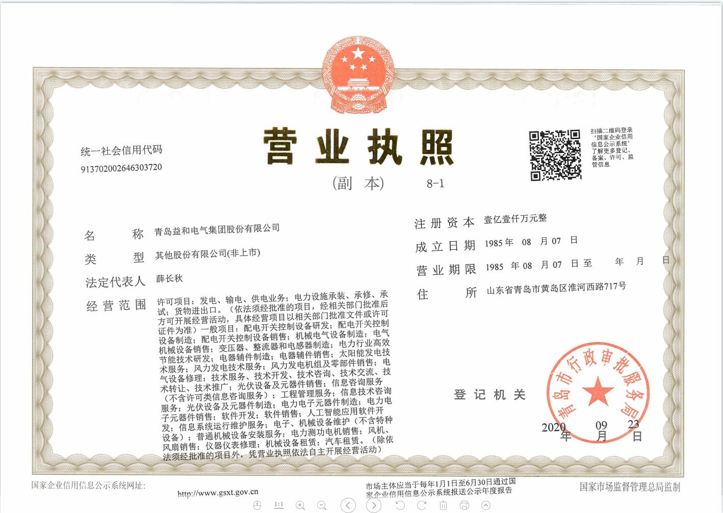 公司名称 | 青岛益和电气集团股份有限公司 | 公司简称 | 青岛益和电气集团股份有限公司 | 公司网址 | |