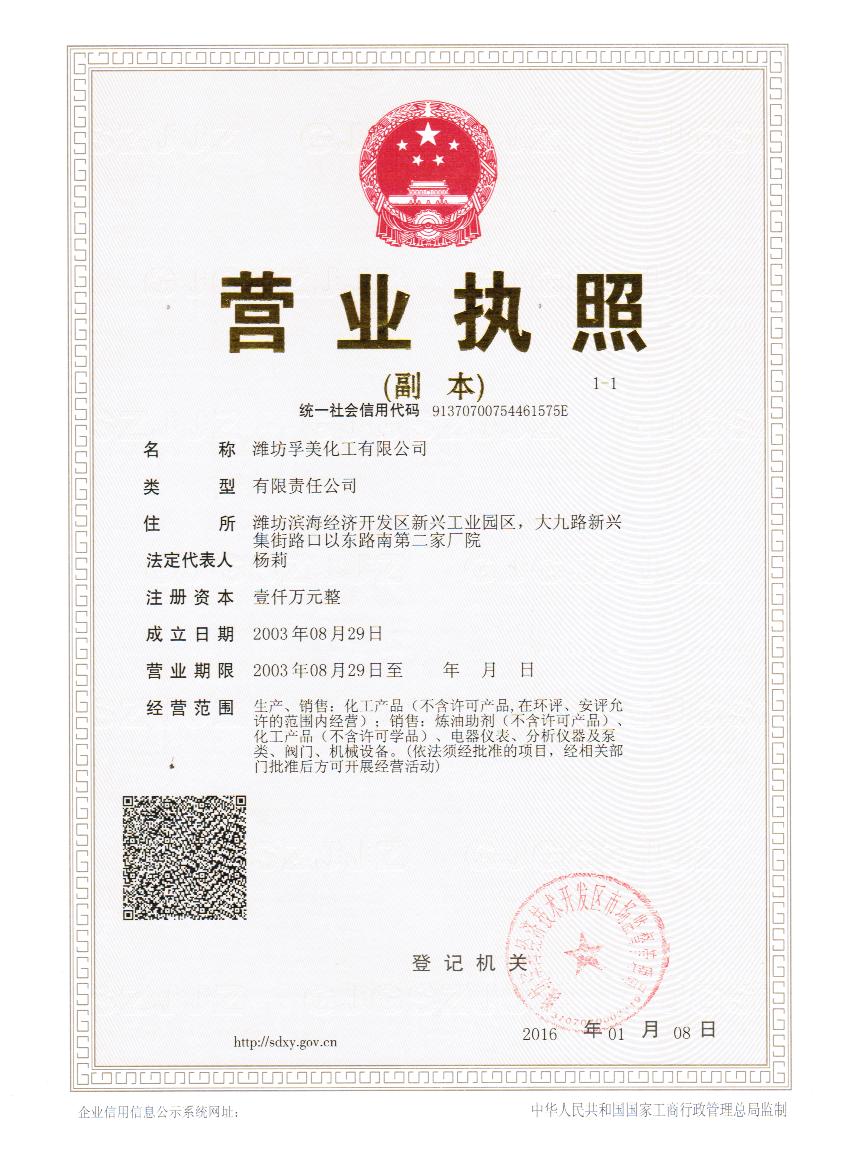 公司名称 | 潍坊孚美化工有限公司 | 公司简称 | 潍坊孚美化工有限公司 | 公司网址 | |