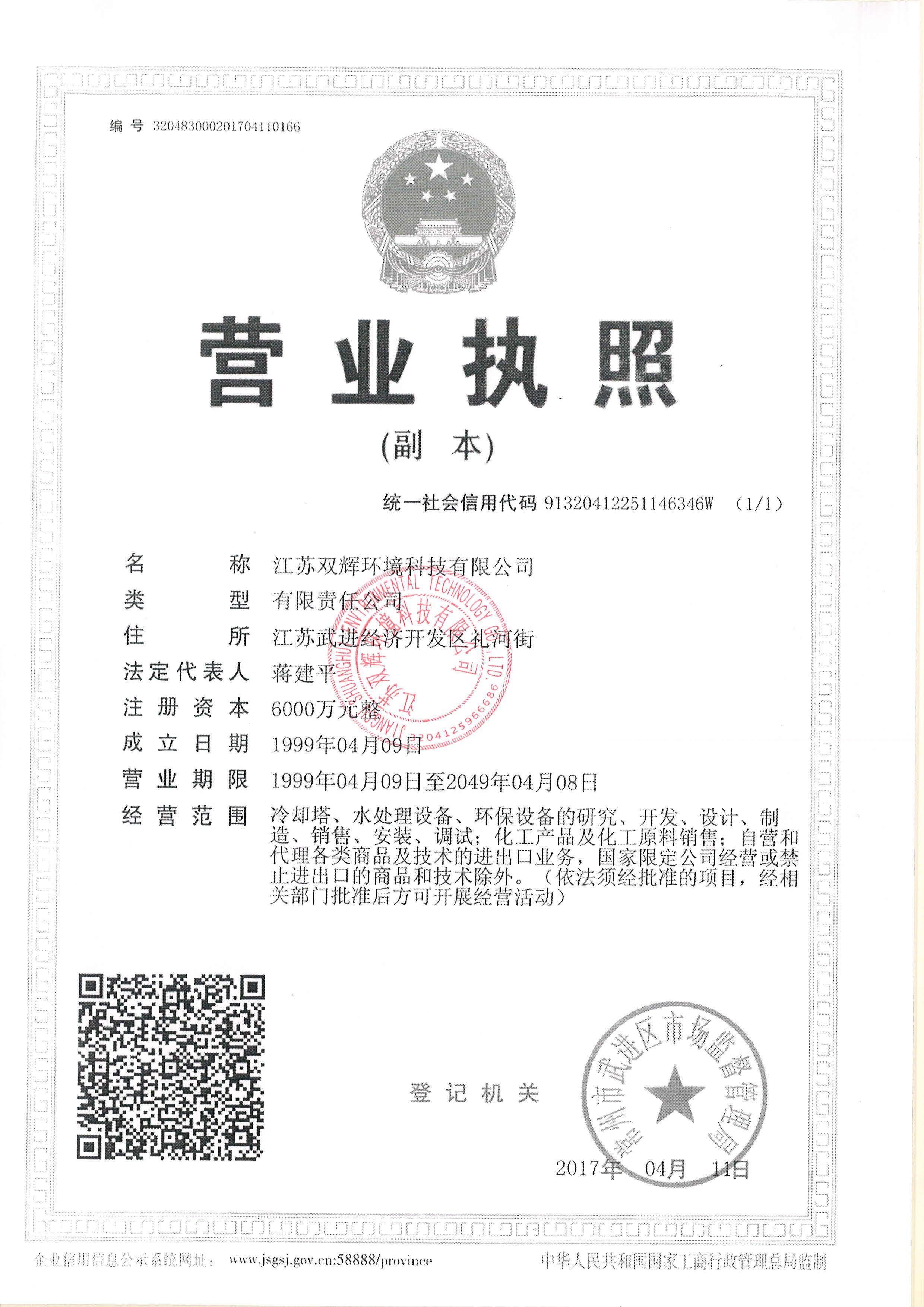 公司近几年销售额愈亿元,主产品“双辉”牌冷却塔连续在同行业评比中名列前茅,90年该产品获得国家质量管理银质奖,大型横、逆流混合结构机力通风冷却塔通过高新技术产品认定。公司设计制造的大型冷却塔多次打入国际市场,出口东南亚等国家,大型钢结构、钢混结构冷却塔、自然通风塔至今已有一仟余套投放市场,分别用于石化、石油、电力、冶金、医药、橡胶工业等领域。公司被常州市认证为科研型企业,连续十年被评为“重合同、守信用”企业,获江苏国际咨询评估公司“AAA”级资信等级证书,企业于98年通过了中国船级社质量认证中心ISO9001的质量体系认证,并连续被江苏省工商局评为免检企业,被中石油集团公司吸收为一级供应网络成员单位,公司为中国玻璃钢工业学会会员单位。在今后的发展中,本公司将一如既往,以严谨的“产品设计、开发、生产、安装和服务”的质量保证模式来满足用户的需求。