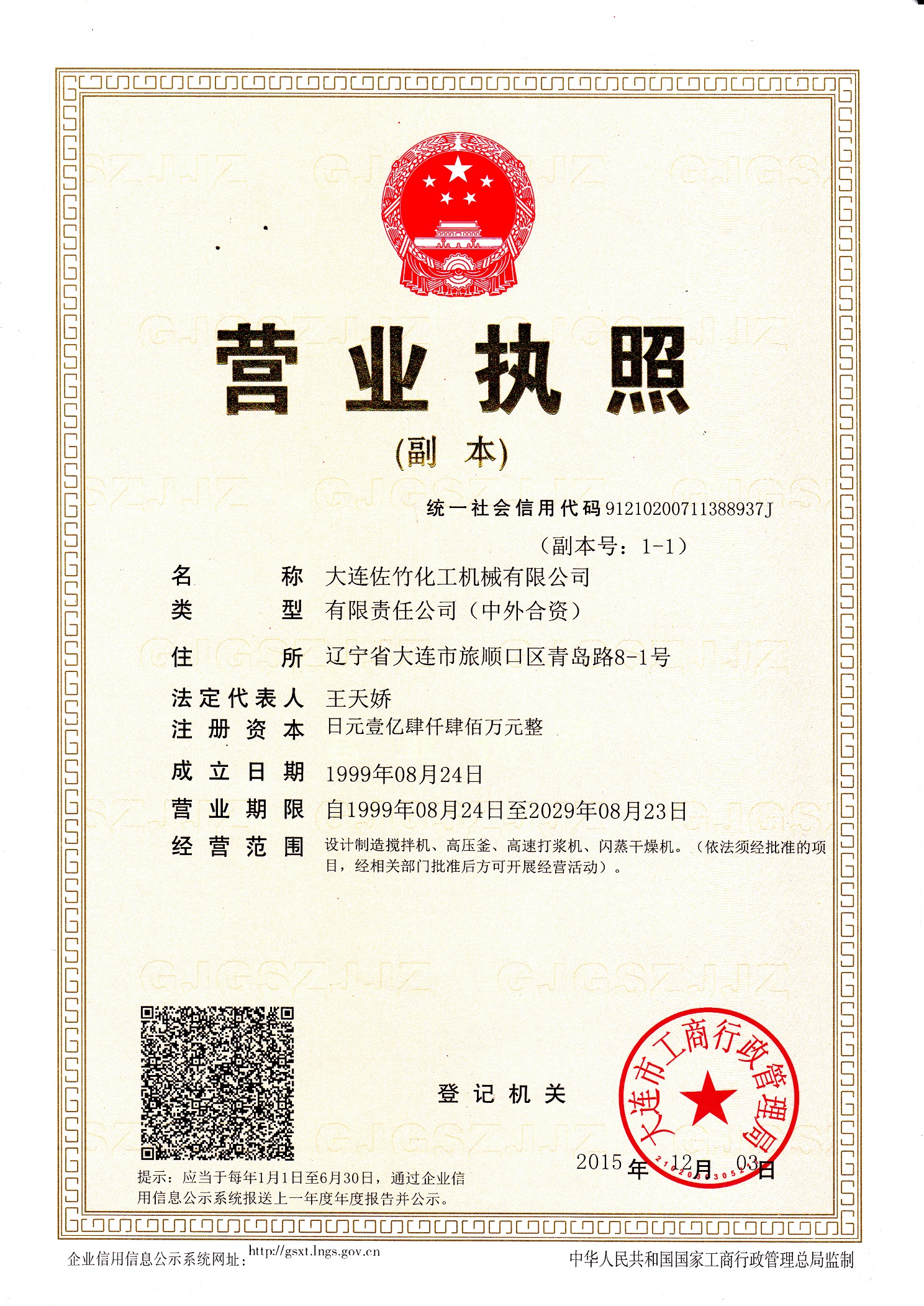 大连佐竹化工机械有限公司成立于1999年,是日本佐竹化学机械工业株式会社在中国的合资公司,是佐竹系列搅拌机在中国的生产基地。