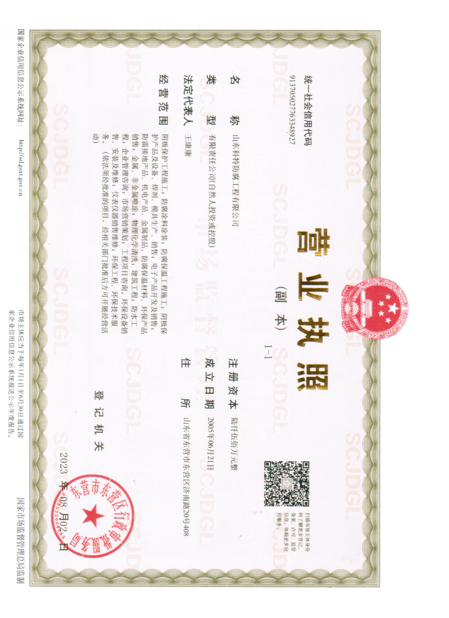山东科特防腐工程有限公司注册于2005年,地处中国第二大油田胜利油田基地山东省东营市,已经拥有十几年的行业经验。公司已通过GB/T19001-ISO9001-2000质量体系认证,已获得阴极保护防腐检测一级施工资质和一级设计资质,公司拥有七项自主知识产权的专利技术。