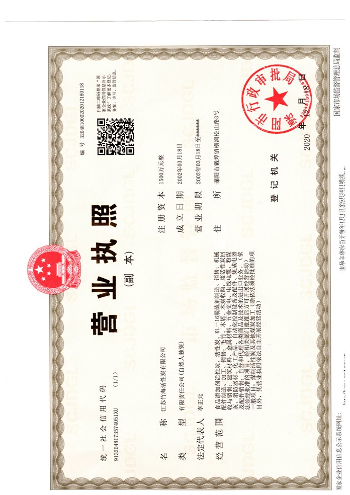 经营范围 | 食品添加剂活性炭、活性炭、KL-16脱硫剂制造、销售:机械配件制造、加工、销售;毛竹、木屑、木炭收购、废活性炭回收与销售;建筑材料、金属材料、五金交电、电线电缆、粉煤灰、消防器材、化工产品、自动化控制设备及配件、集成电器及配件销售;自营好代理各类商品及技术的进出口业务。 | ||||