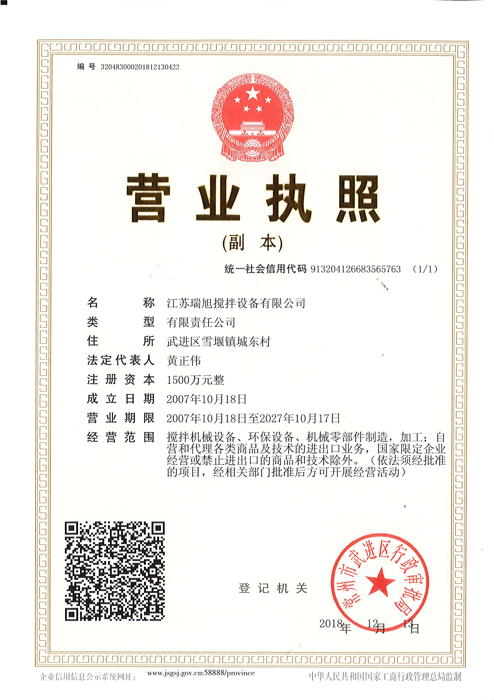 公司名称 | 江苏瑞旭搅拌设备有限公司 | 公司简称 | 江苏瑞旭搅拌设备有限公司 | 公司网址 | www.jiaoban.cc |
