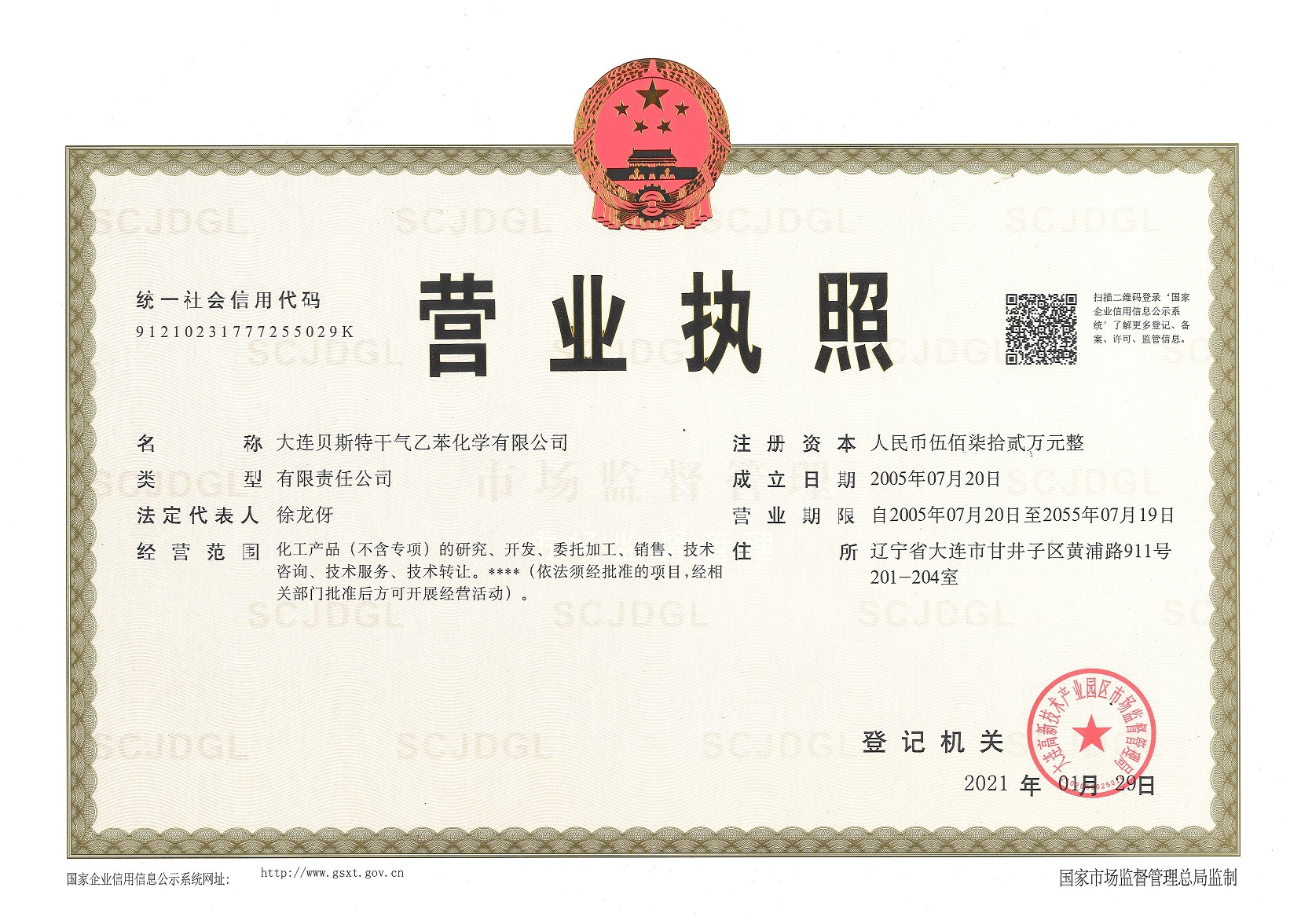 注册地址:辽宁省大连市甘井子区
