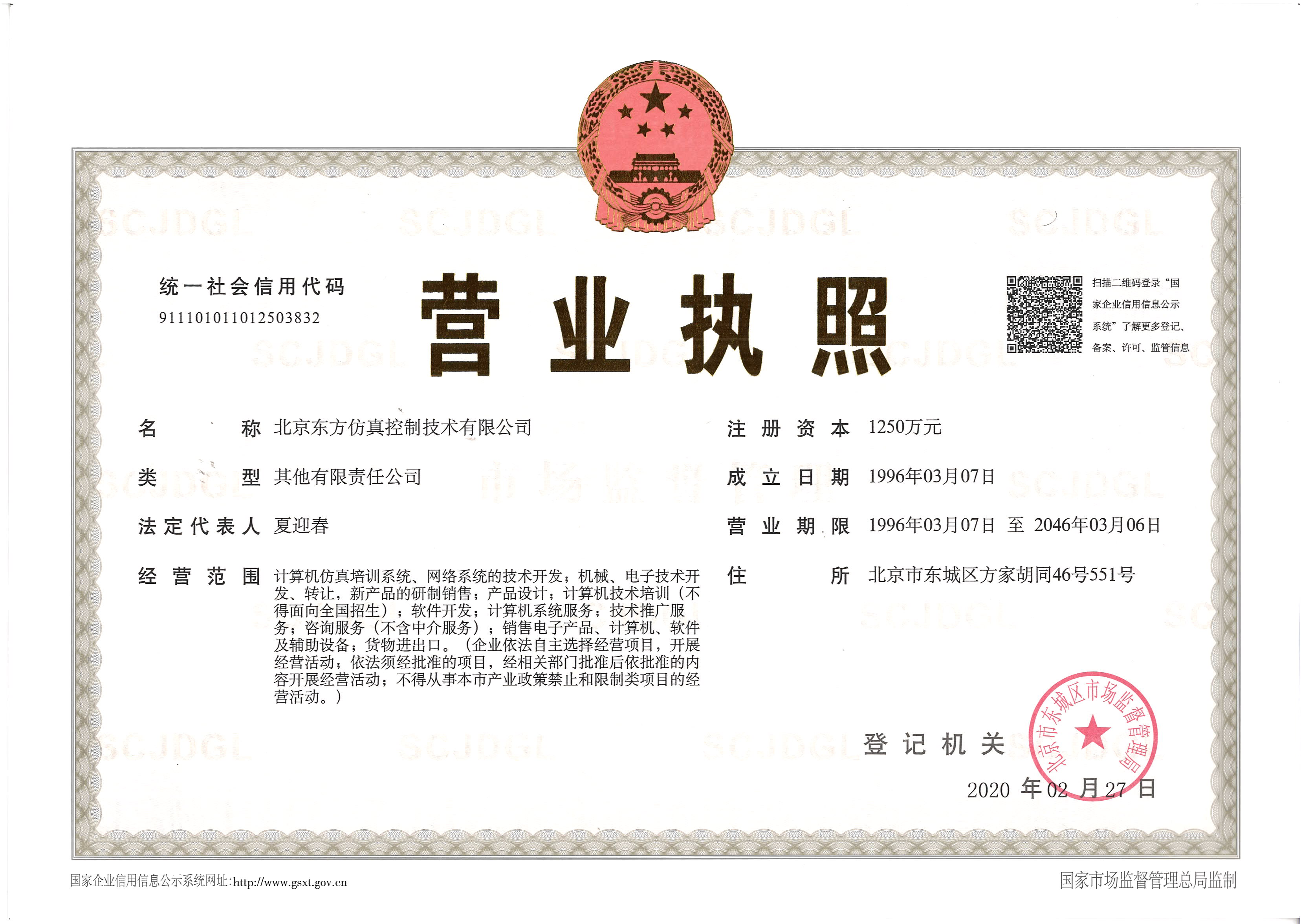 注册地址 | 北京 北京市 东城区 | 法定代表人 | 夏迎春 | 注册资本 | 1250万人民币 |
