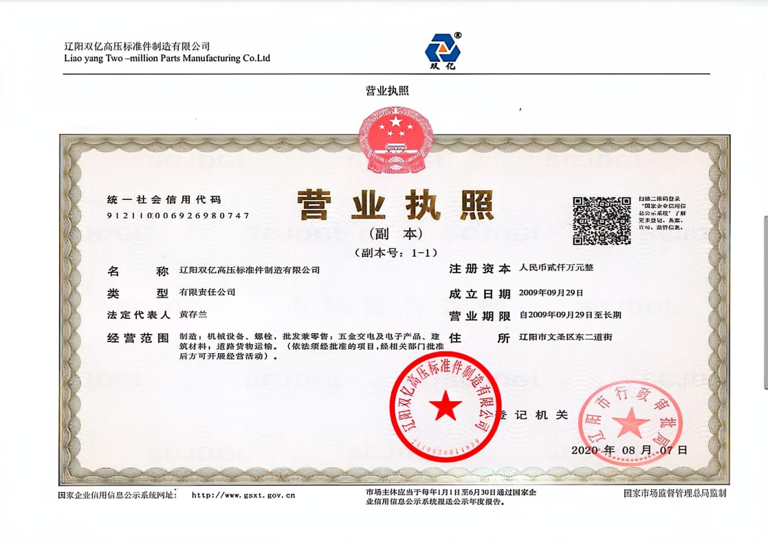 | 公司名称 | 辽阳双亿高压标准件制造有限公司 | 公司简称 | 辽阳双亿高压标准件制造有限公司 | 公司网址 | www.lysybzj.com |