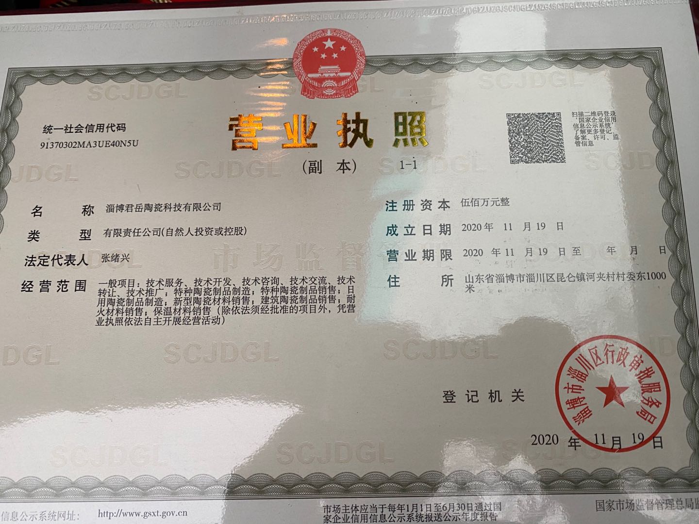 | 公司名称 | 淄博君岳陶瓷科技有限公司 | 公司简称 | 淄博君岳陶瓷科技有限公司 | 公司网址 | |