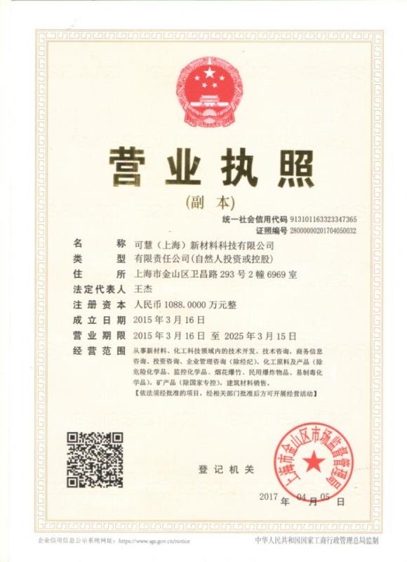 可慧(上海)新材料科技有限公司拥有雄厚的科研实力,在建筑,环保,材料等领域,积累了多余项科研成果,配套技术。公司拥有工厂分布北京,郑州,长春,西安,甘肃,重庆,福州,广州,桂林,贵阳等 22 个分公司及分厂竭诚为您服务。
