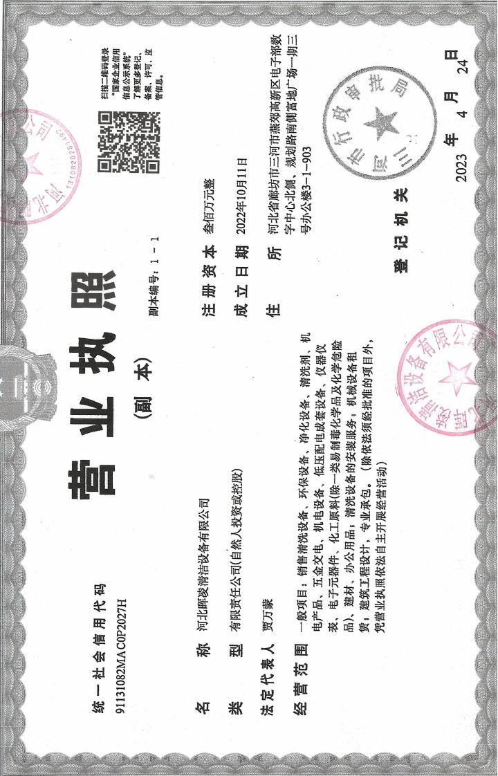 河北晖凌清洁设备有限公司是一家致力于开拓高压水射流领域应用的专业化公司;公司生产销售的高压清洗 机都是由原装进口高压柱塞泵、品牌电机(可选)、本田汽油机(可选)、潍柴柴油机(可选)、进口安全阀、 调压阀、压力传感器等知名品牌组装而成;其性能稳定,质量有保障,故障率低;压力从 100-2800bar、流量从 10-1000L/min 任意供选;根据客户需求可配备各类形式、规格的高压水枪、清洗软管、清洗喷头等附件,用于 完成各种主体表面,各种管道管束,罐体、容器等方面的水垢、污垢、锈蚀、毛刺等清洗清洁工作。 公司除生产销售清洗机之外,更主要的业务就是为客户提供现代化的智能清洗解决方案,从了解客户的清洗 难题、制定清洗解决方案,到提供专业培训售后服务体系都是具有 10 年以上的设计专家一站式服务;方案设计 包括:清洗工艺、高压泵站、执行机构、控制单元、水(含废弃物)处理、清洗后的防锈处理等。 进口高压柱塞泵及核心部件品牌有:美国 jetstream、美国 Stoneage、欧洲泵业集团 INTERPUMP、意大利 Pratissoli、意大利 OUD、AR 等。 我司秉承“智能清洗、创新服务”的宗旨,以市场需求为导向,以环保、健康、智能的清洗理念为指导思想, 引进国内外前沿的清洗技术、核心部件,集组装、销售、培训、配套服务为一体,以专业的方案设计、优良的产 品质量、完善的售后服务,为汽车、电力、轨道交通、石油化工、铁路、机械加工等行业提供专业化、特色化配 套产品及服务。 河北晖凌清洁设备有限公司先进的清洗技术和高质量的产品将确保您的满意,我们期待能与您合作!