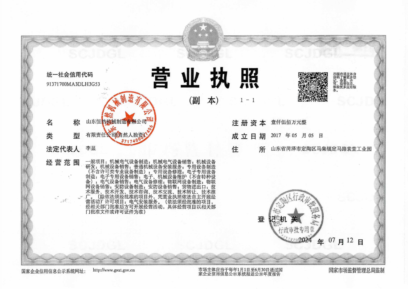 山东恒然机械始终谨记铁肩担道义,妙手铸精品的初心,始终坚持质量为根、服务为本。企业宗旨:树百年恒然品质,立业内服务标杆!