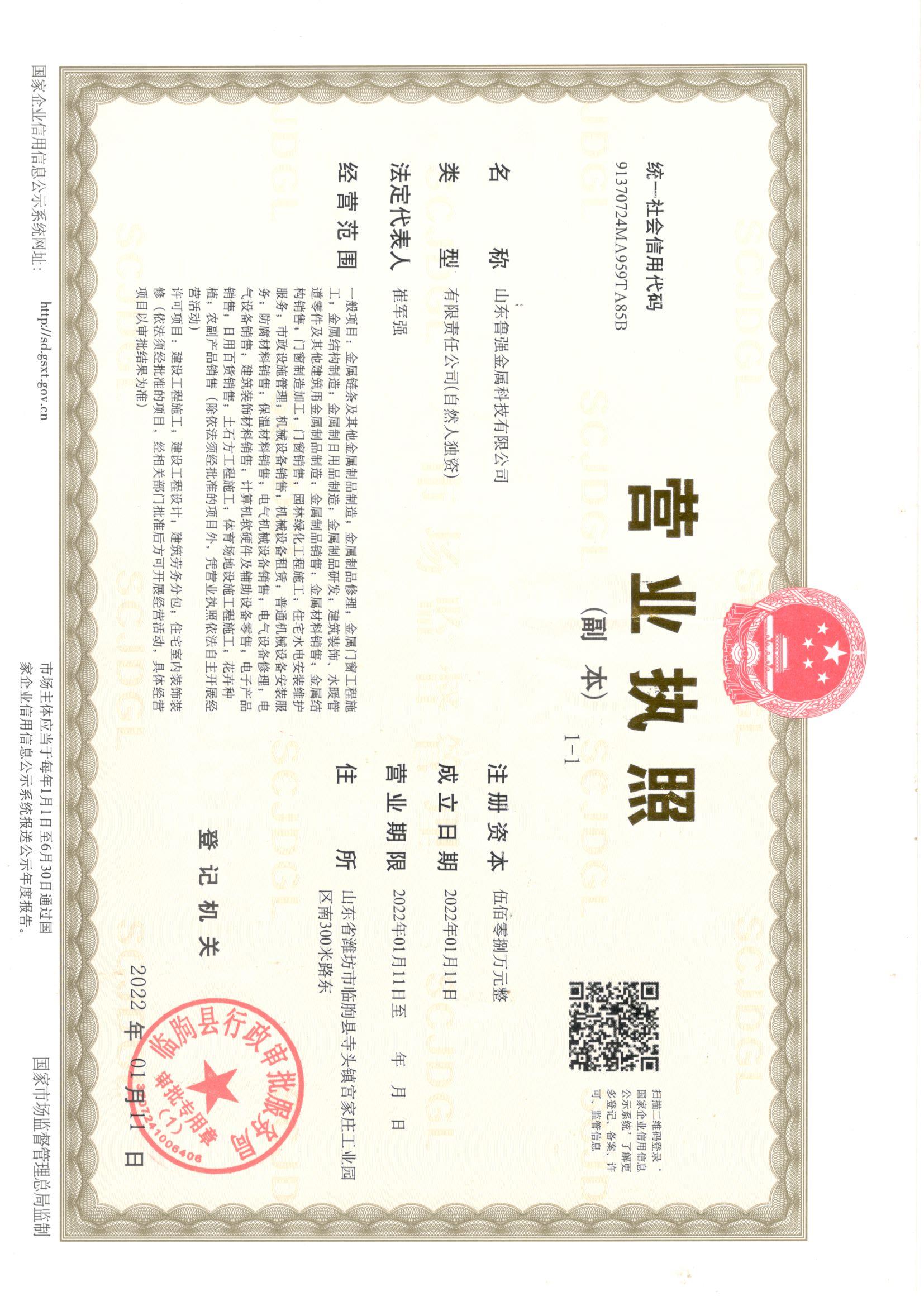 经营范围 | 金属制品制造,金属制品维修,金属门窗工程,建筑装饰,市政设施,园林绿化,护栏大门,凉亭廊架,机械设备,电机维修。 | ||||