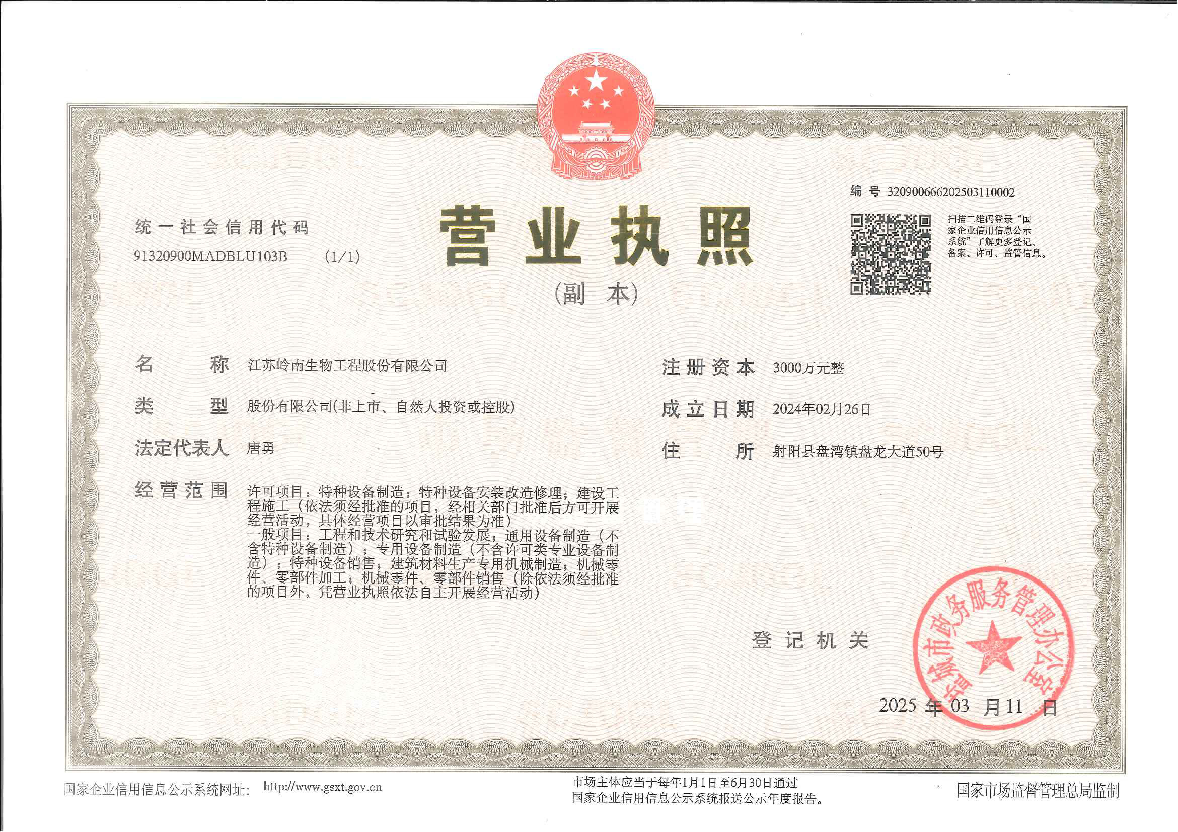 江苏岭南生物工程股份有限公司是一家股份制工业企业,主要从事:压力容器、生物发酵、化工机械等设备制造与安装,公司是中国发酵行业协会成员单位,持有A2类压力容器制造许可证。