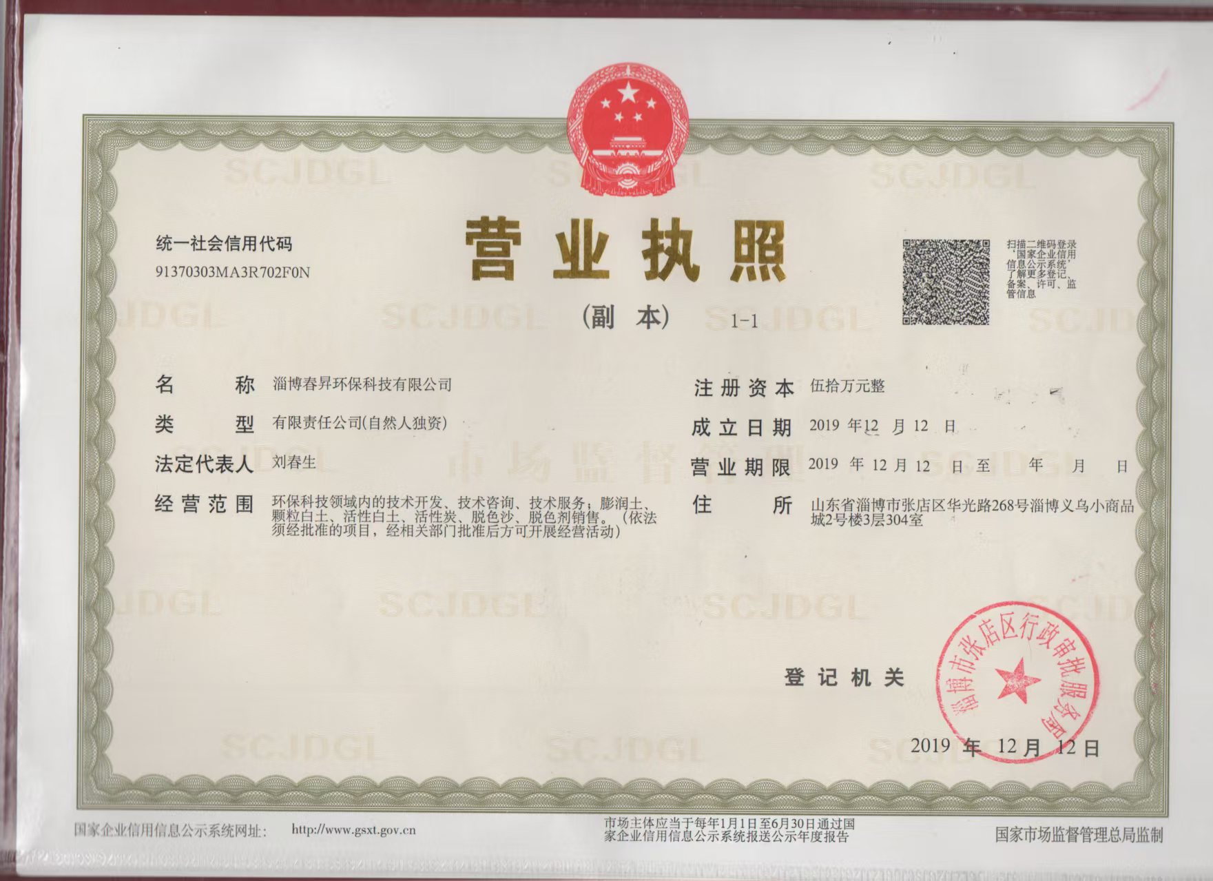 | 注册地址 | 山东 淄博市 张店区 | 法定代表人 | 刘春生 | 注册资本 | 50万人民币 |