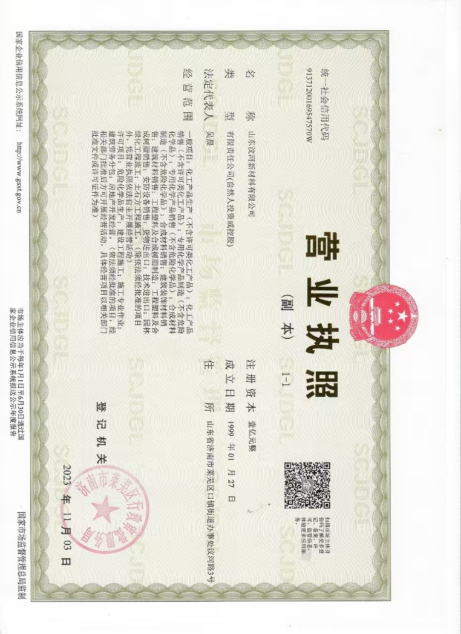山东汶河新材料有限公司始建于1992年,地址位于山东省济南市莱芜区,口镇汶河路3号,目前公司占地800余亩,拥有员工600余人,是萘系、羧酸系、脂肪族系、氨基磺酸盐系专业分散剂生产厂家,是山东省高新技术企业,外加剂协会常务理事,被国家确定为外加剂骨干企业,公司已通过iso9001质量管理体系、iso14001环境管理体系、OHSMS18001安全健康体系认证,是省级安全标准化二级企业,国家标准化良好行为AAA级企业,年产量20万吨,销售收入12亿元涉及产品类型40余种的集团化公司。