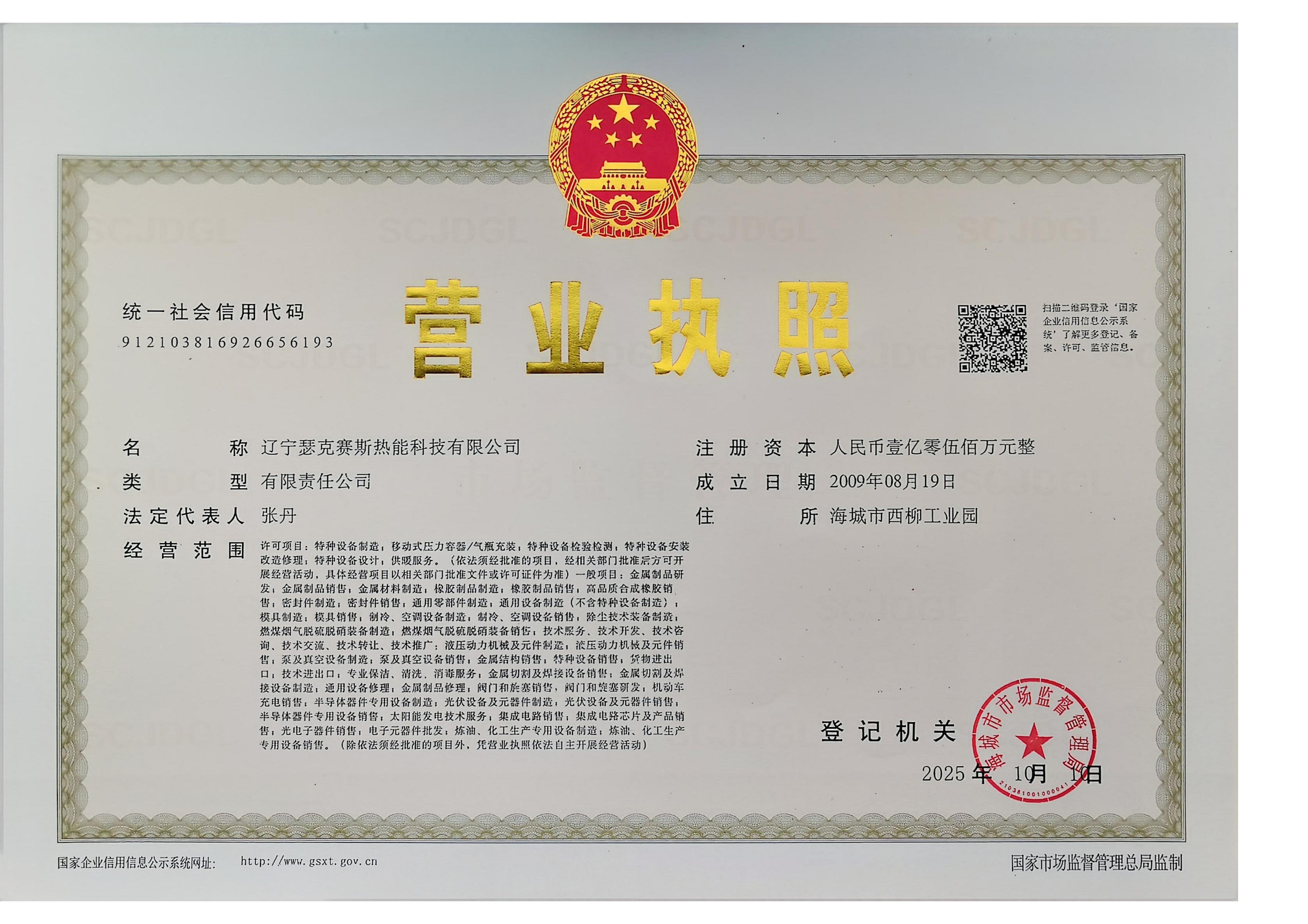 | 公司名称 | 辽宁瑟克赛斯热能科技有限公司 | 公司简称 | 辽宁瑟克赛斯热能科技有限公司 | 公司网址 | |