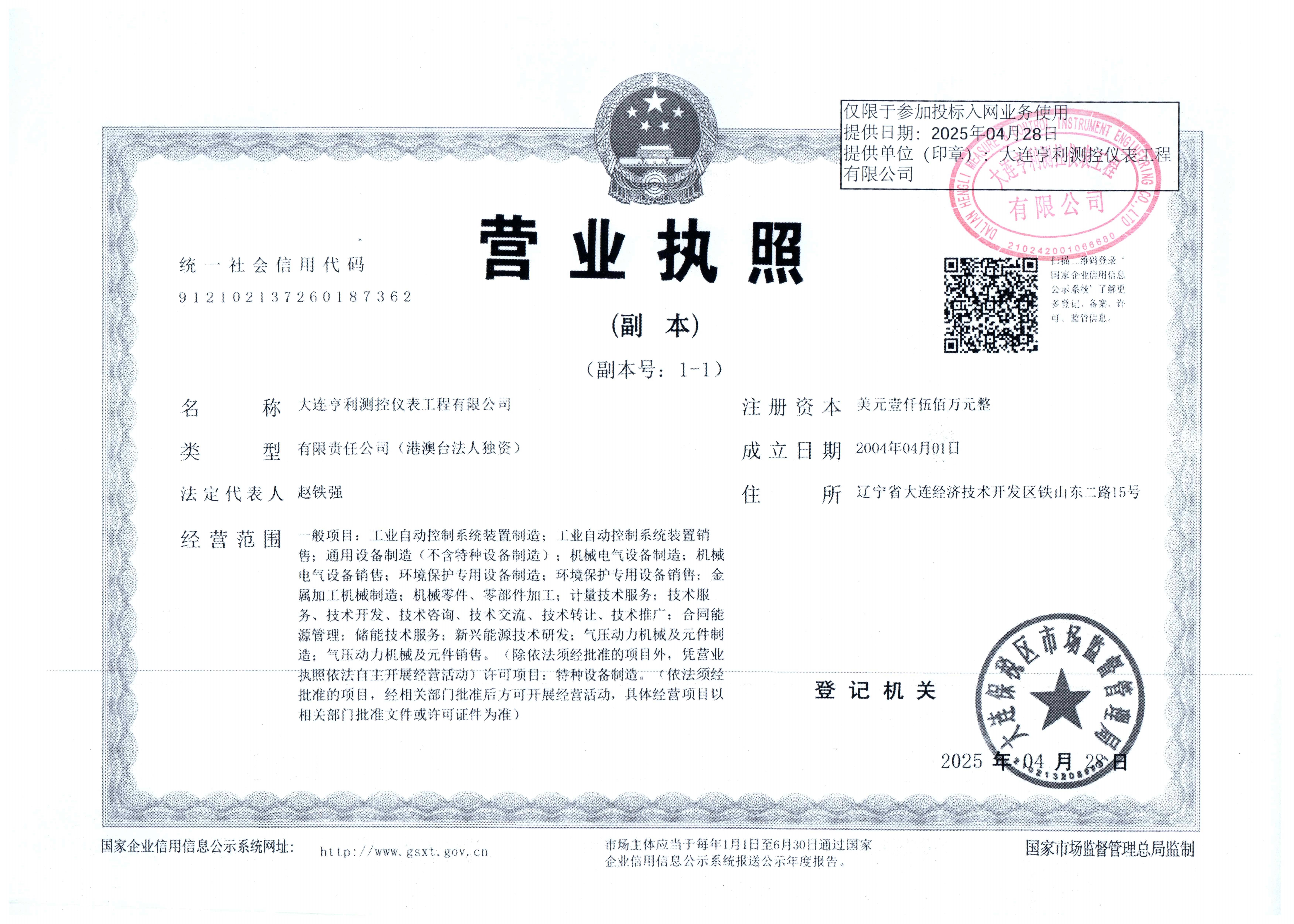 | 公司名称 | 大连亨利测控仪表工程有限公司 | 公司简称 | 大连亨利测控仪表工程有限公司 | 公司网址 | http://www.dalian-hengli.com |