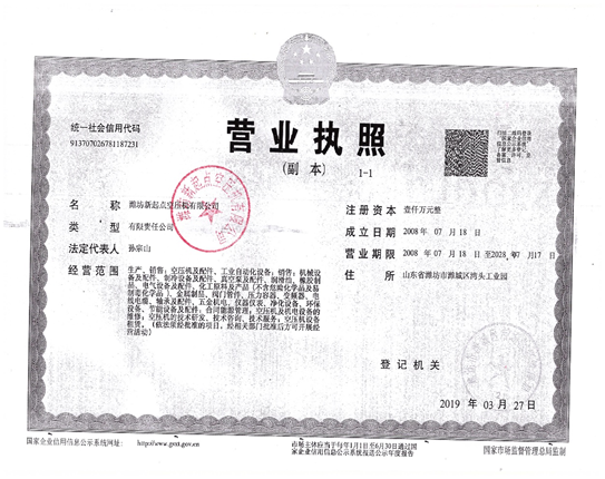 | 公司名称 | 潍坊新起点空压机有限公司 | 公司简称 | 潍坊新起点空压机有限公司 | 公司网址 | |