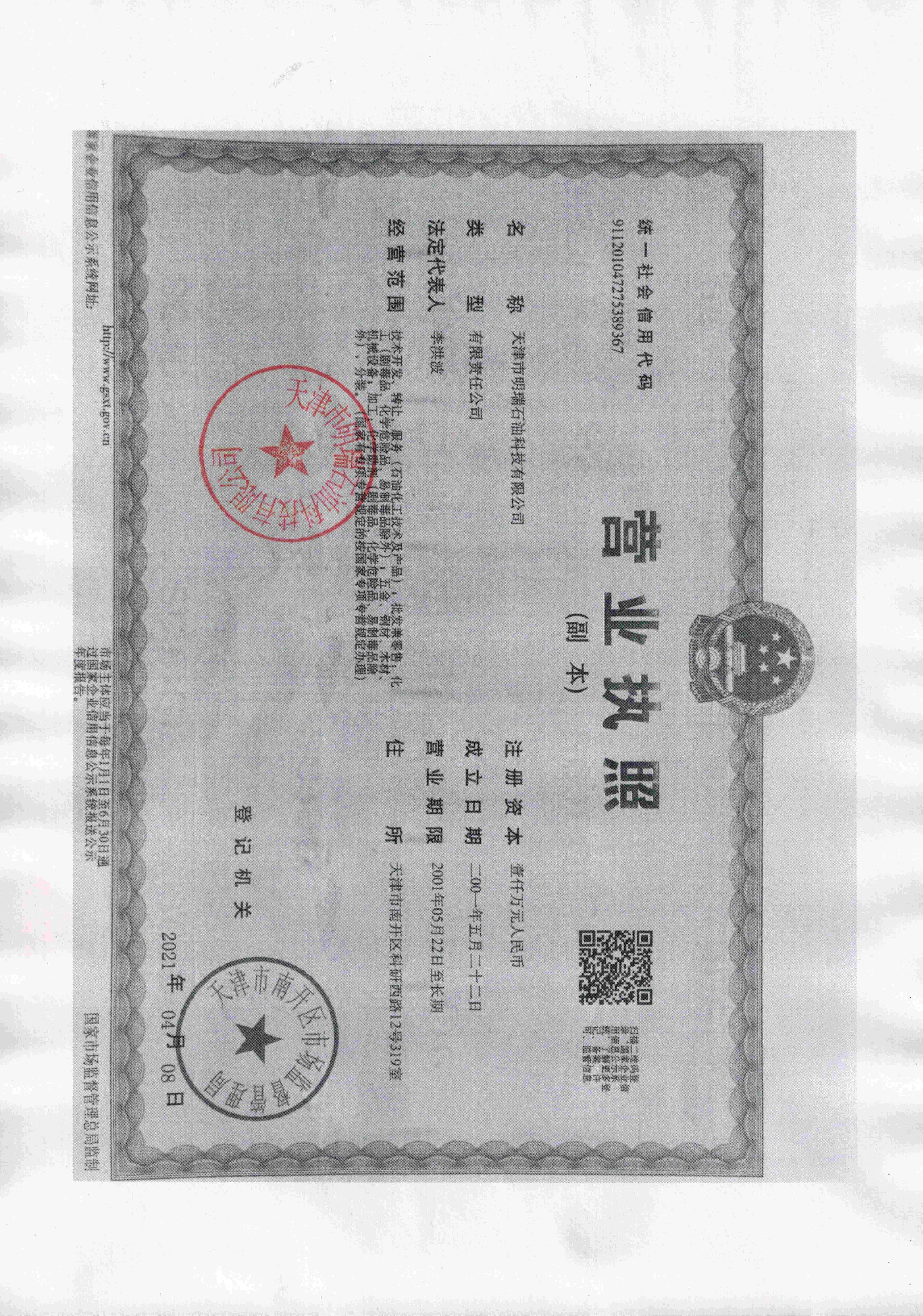 | 公司名称 | 天津市明瑞石油科技有限公司 | 公司简称 | 天津市明瑞石油科技有限公司 | 公司网址 | |