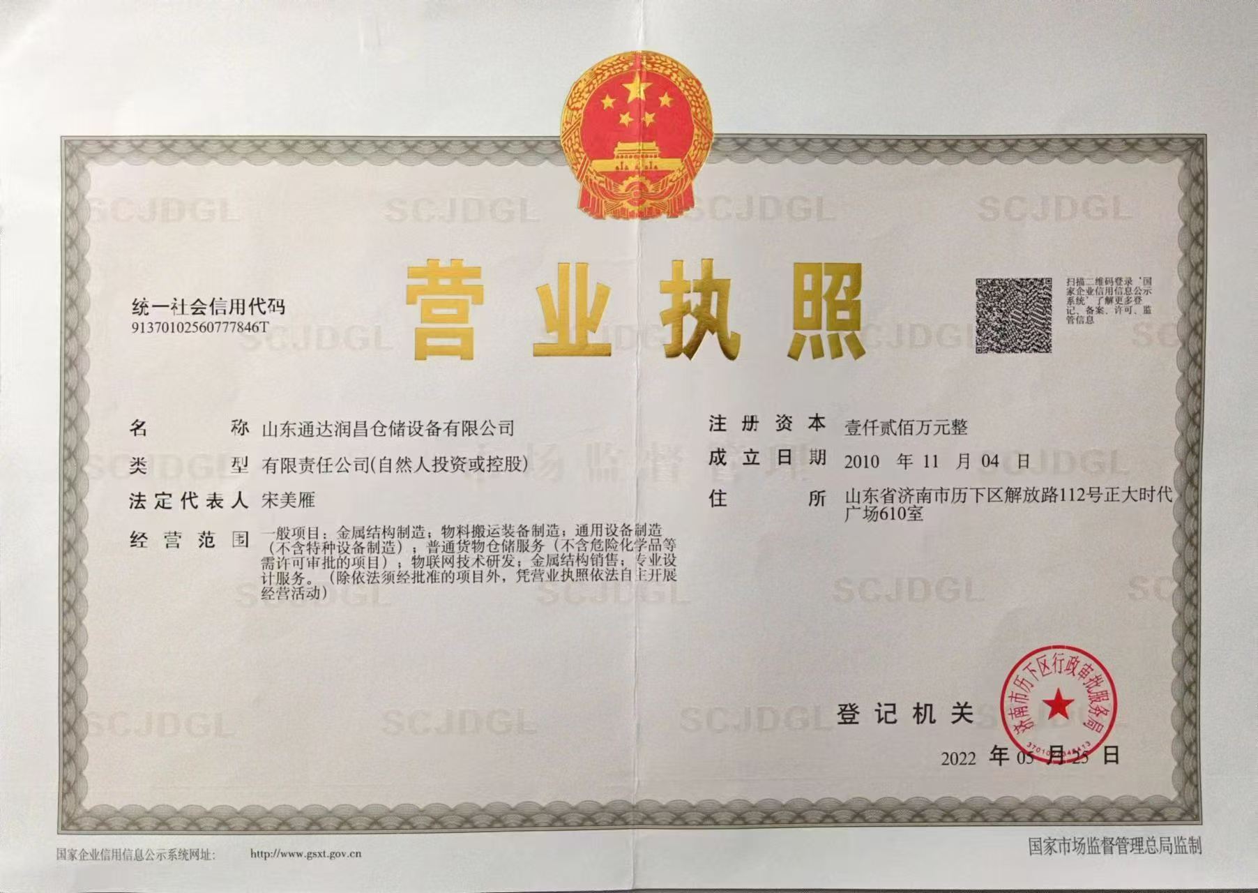 | 注册地址 | 山东 济南市 历下区 | 法定代表人 | 宋美雁 | 注册资本 | 1200万人民币 |