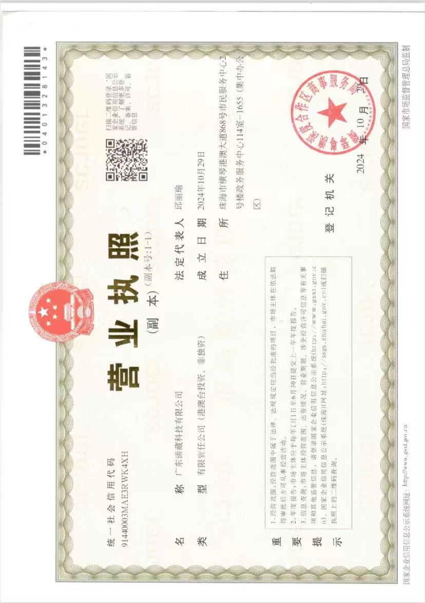 | 注册地址 | 广东 珠海市 香洲区 | 法定代表人 | 邱丽瑜 | 注册资本 | 1000万人民币 |