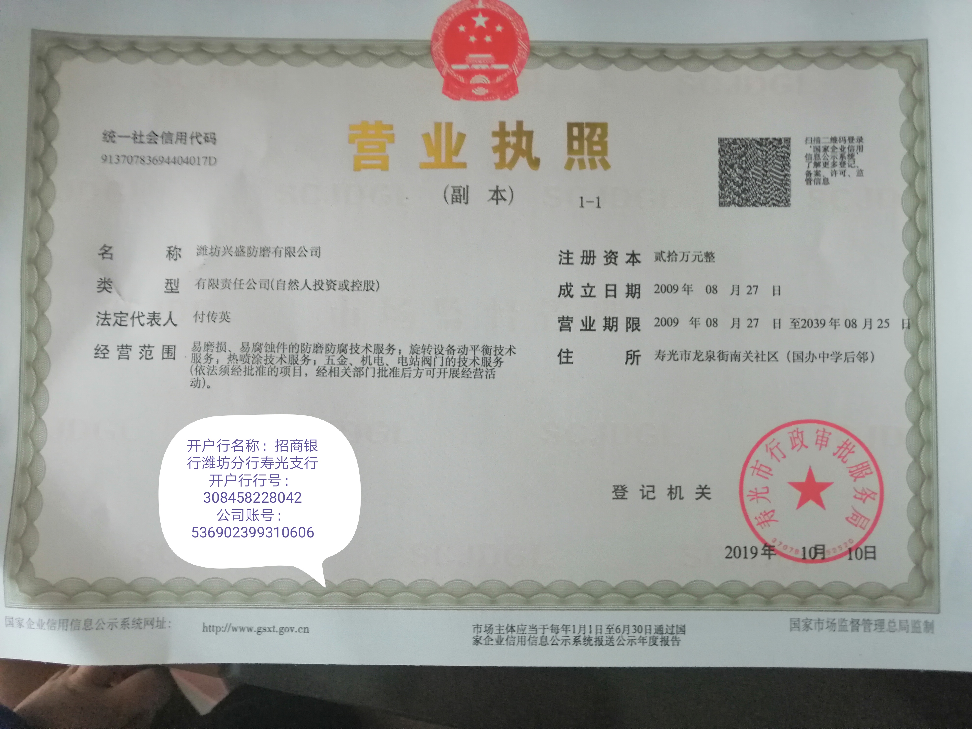| 公司名称 | 潍坊兴盛防磨有限公司 | 公司简称 | 潍坊兴盛防磨有限公司 | 公司网址 | www.sdwfxs.com |