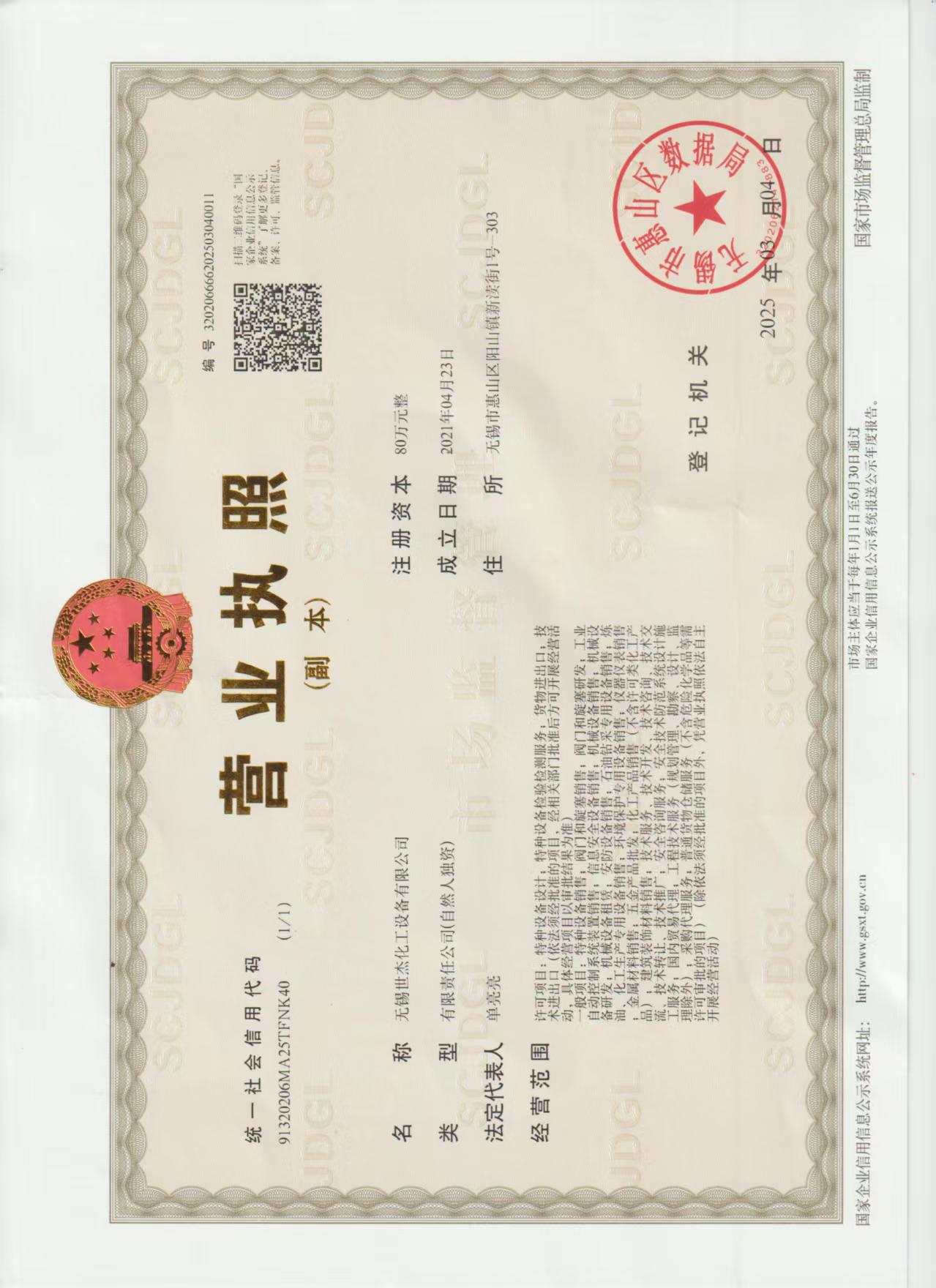 | 公司介绍 | 许可项目:特种设备设计;特种设备检验检测服务;货物进出口;技术进出口(依法须经批准的项目,经 相关部门 批准后方可开展经营活动,具体经营项目以审批为准) 一般项目:特种设备销售;阀门和旋塞销售;阀门和旋塞研发;工业自动控制系统装置销售;信息安全设备销售;机械设备销售:机械设备研发;机械设备租赁;安防设备销售;石油钻采专用设备销售;炼油、化工生产专用设备销售;环境保护专用设备销售;仪器仪表销售;金属材料销售;五金产品批发;化工产品销售(不含许可类化工产品);建筑装饰材料销售;技术服务、技术开发、技术咨询、技术交流、技术转让、技术推广;安全咨询服务;安全技术防范系统设计施工服务;国内贸易代理;工程技术服务(规划管理、勘察、设计、监理除外);采购代理服务;普通货物仓储服务(不含危险学品等需许可审批的项目)(除依法须经批准的项目外,凭营业执照衣法自主开展经营活动) |