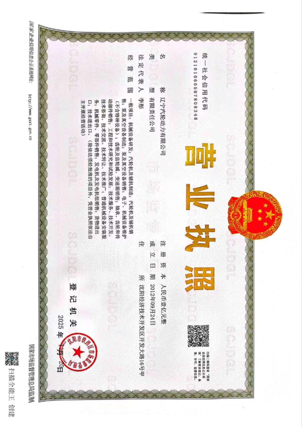 | 注册地址 | 辽宁 沈阳市 铁西区 | 法定代表人 | 李彤 | 注册资本 | 10000万人民币 |
