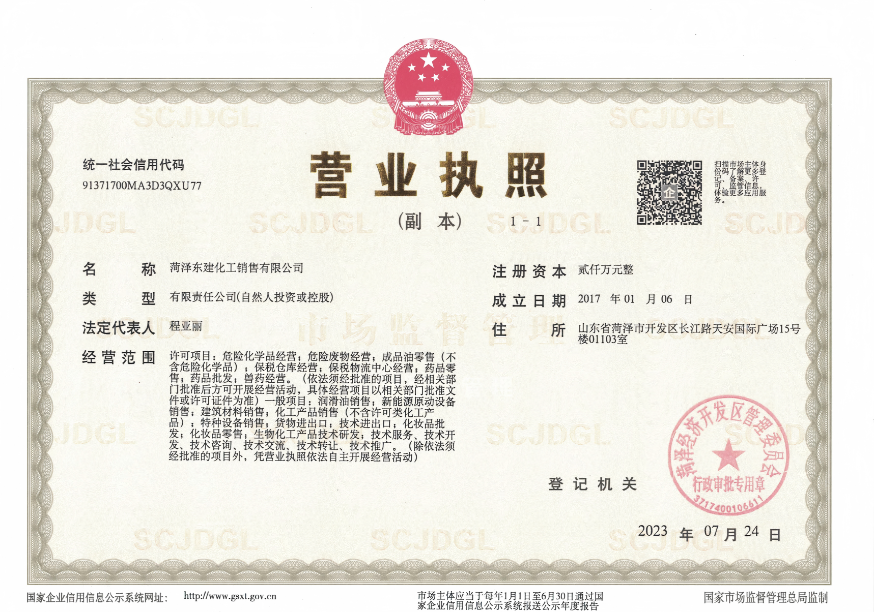 | 公司名称 | 菏泽东建化工销售有限公司 | 公司简称 | 菏泽东建化工销售有限公司 | 公司网址 | |