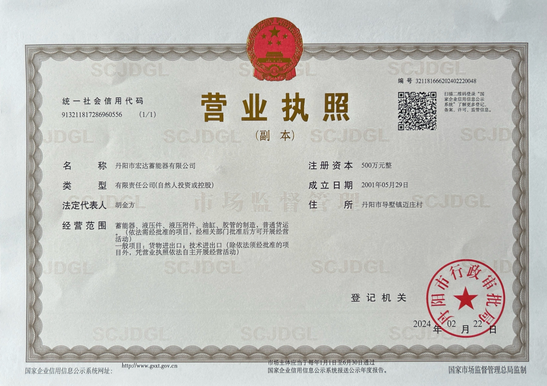 丹阳市宏达蓄能器有限公司成立于2001年5月29日,公司承接囊式蓄能器和各种液压管接头、胶管总成等生产业务。目前主要客户市场:油田、钢铁厂、建筑机械、发电厂、矿山、港口、汽车、锻压和农机等