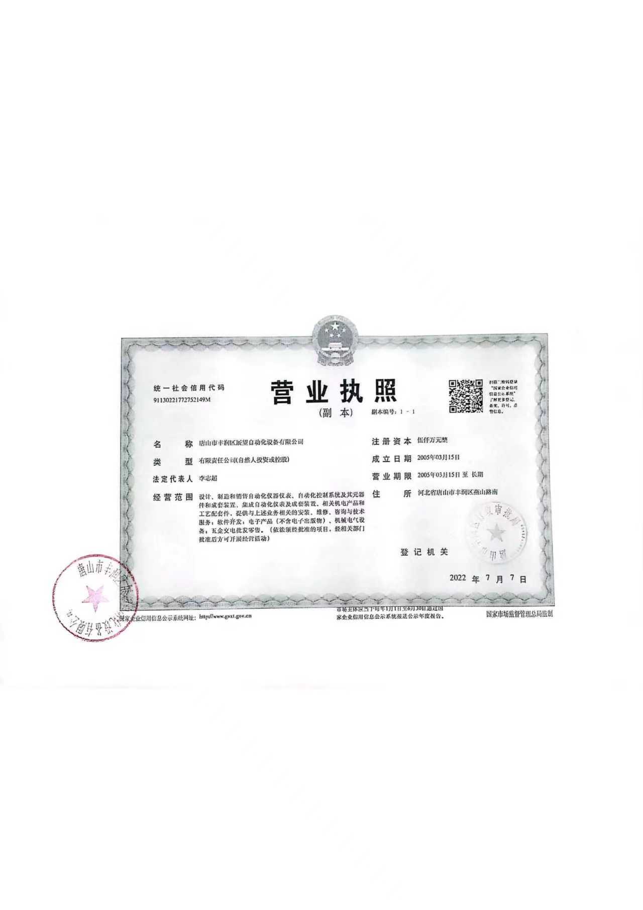 | 注册地址 | 河北 唐山市 | 法定代表人 | 李志超 | 注册资本 | 5000万人民币 |