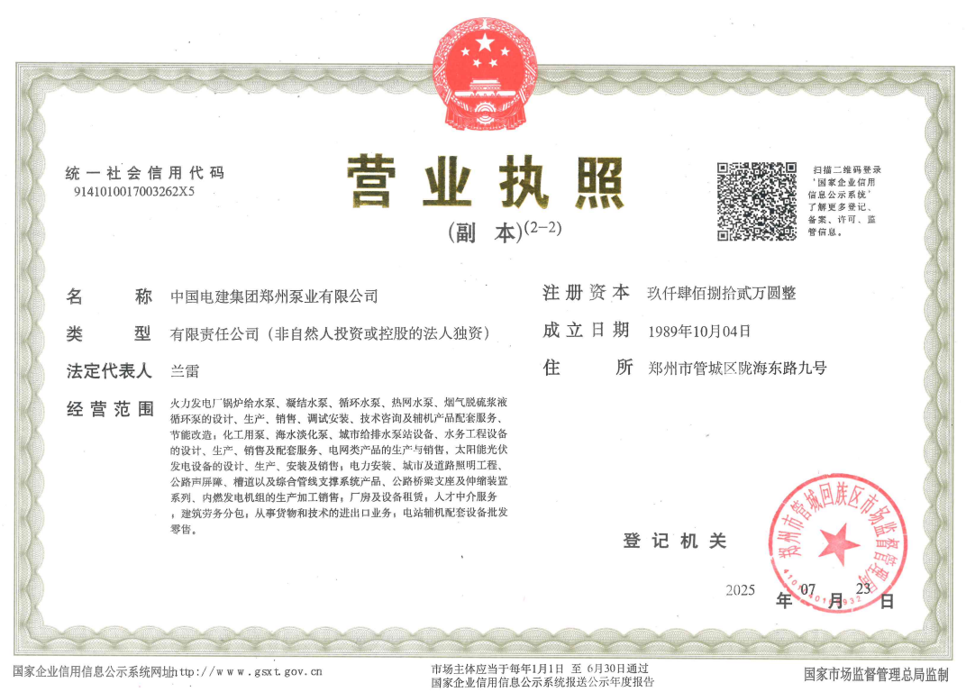 | 经营范围 | 火力发电厂锅炉给水泵、凝结水泵、循环水泵、热网水泵、烟气脱硫浆液循环泵的设计、生产、销售、调试安装、技术咨询及辅机产品配套服务、节能改造;化工用泵、海水淡化泵、城市给排水泵站设备、水务工程设备的设计、生产、销售及配套服务、电网类产品的生产与销售,太阳能光伏发电设备的设计、生产、安装及销售;电力安装、城市及道路照明工程、公路声屏障、槽道以及综合管线支撑系统产品、公路桥梁支座及伸缩装置系列、内燃发电机组的生产加工销售;厂房及设备租赁;人才中介服务;建筑劳务分包;从事货物和技术的进出口业务;电站辅机配套设备批发零售。 | ||||