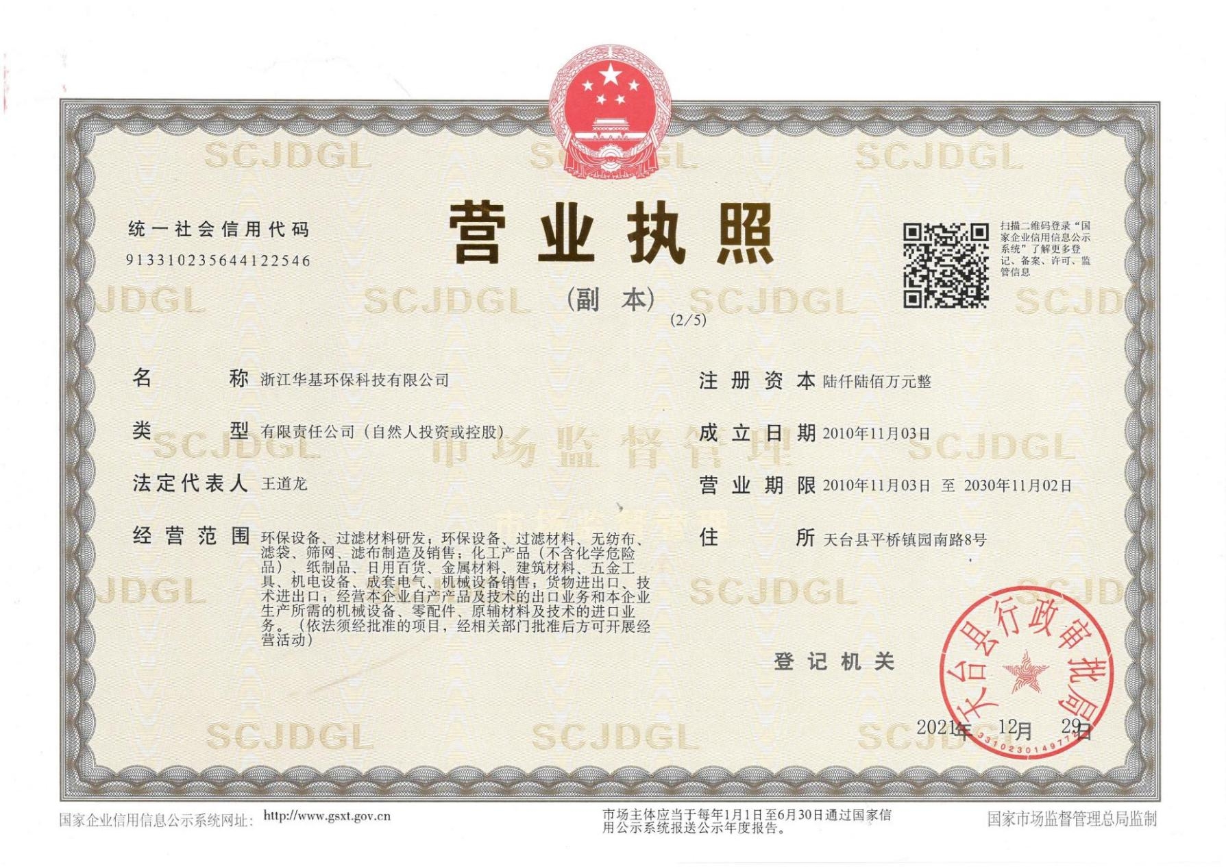 | 公司名称 | 浙江华基环保科技有限公司 | 公司简称 | 浙江华基环保科技有限公司 | 公司网址 | www.headingfilter.com |