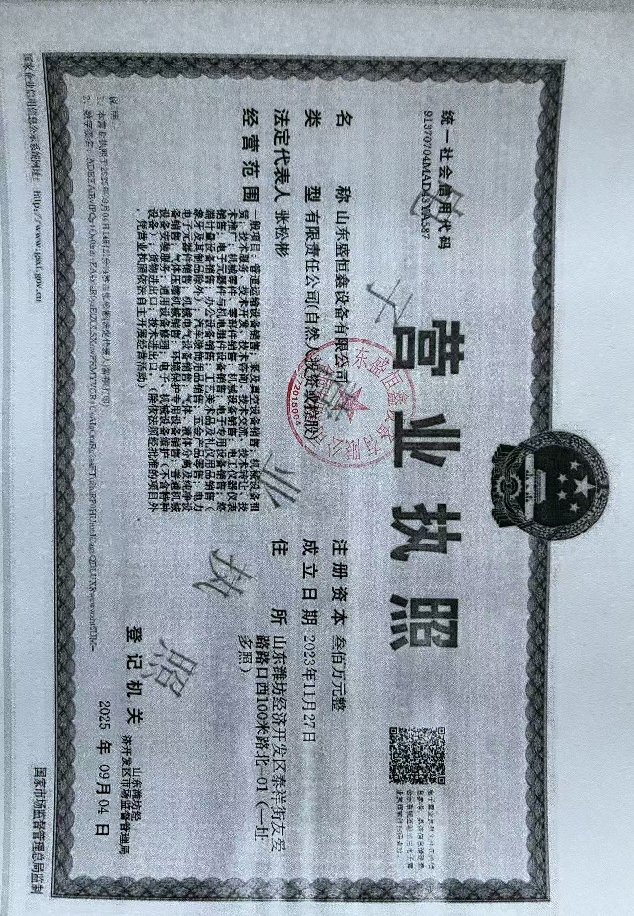 | 公司名称 | 山东盛恒鑫设备有限公司 | 公司简称 | 山东盛恒鑫设备有限公司 | 公司网址 | |
