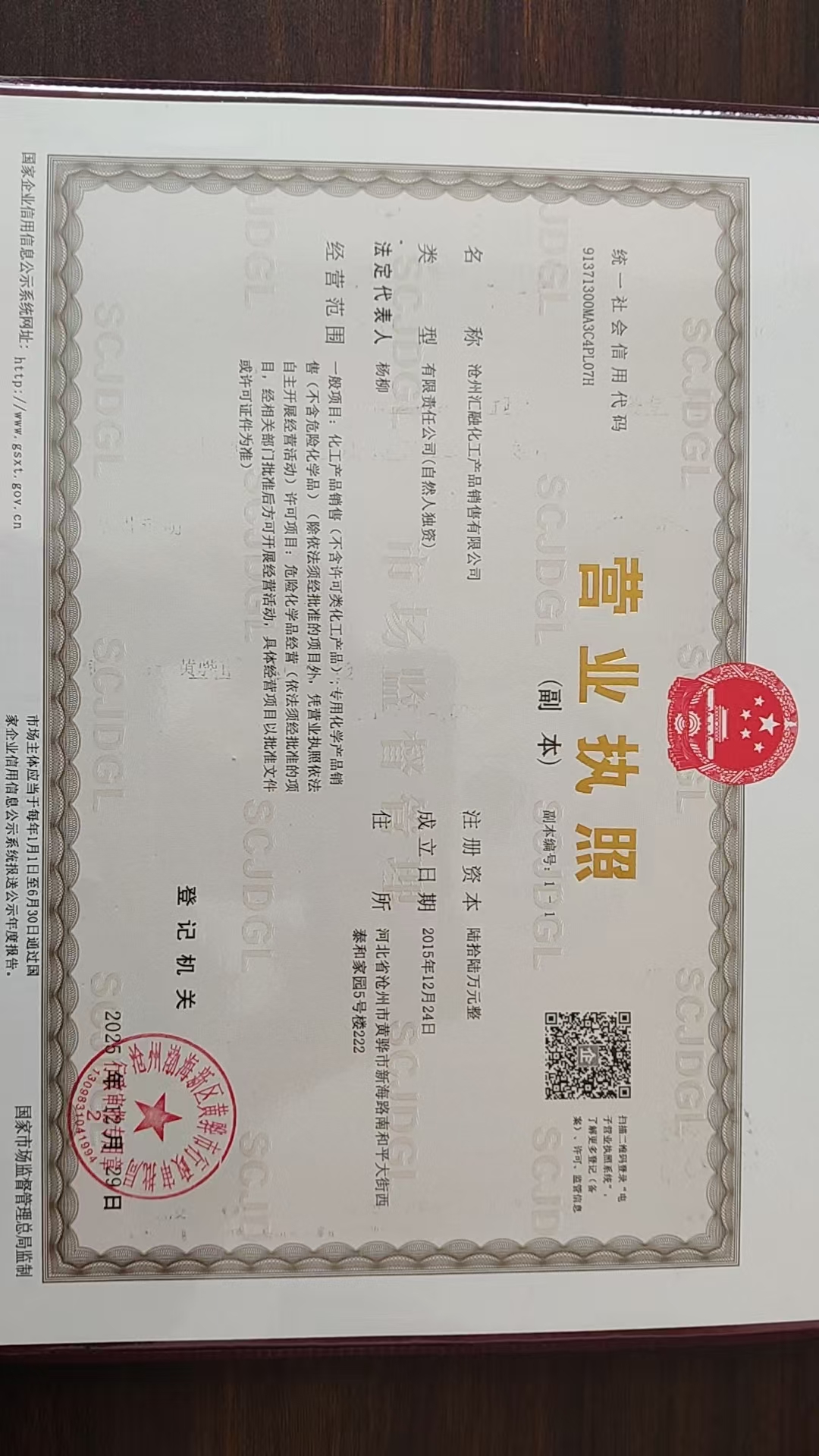 注册地址:河北 沧州市 黄骅市