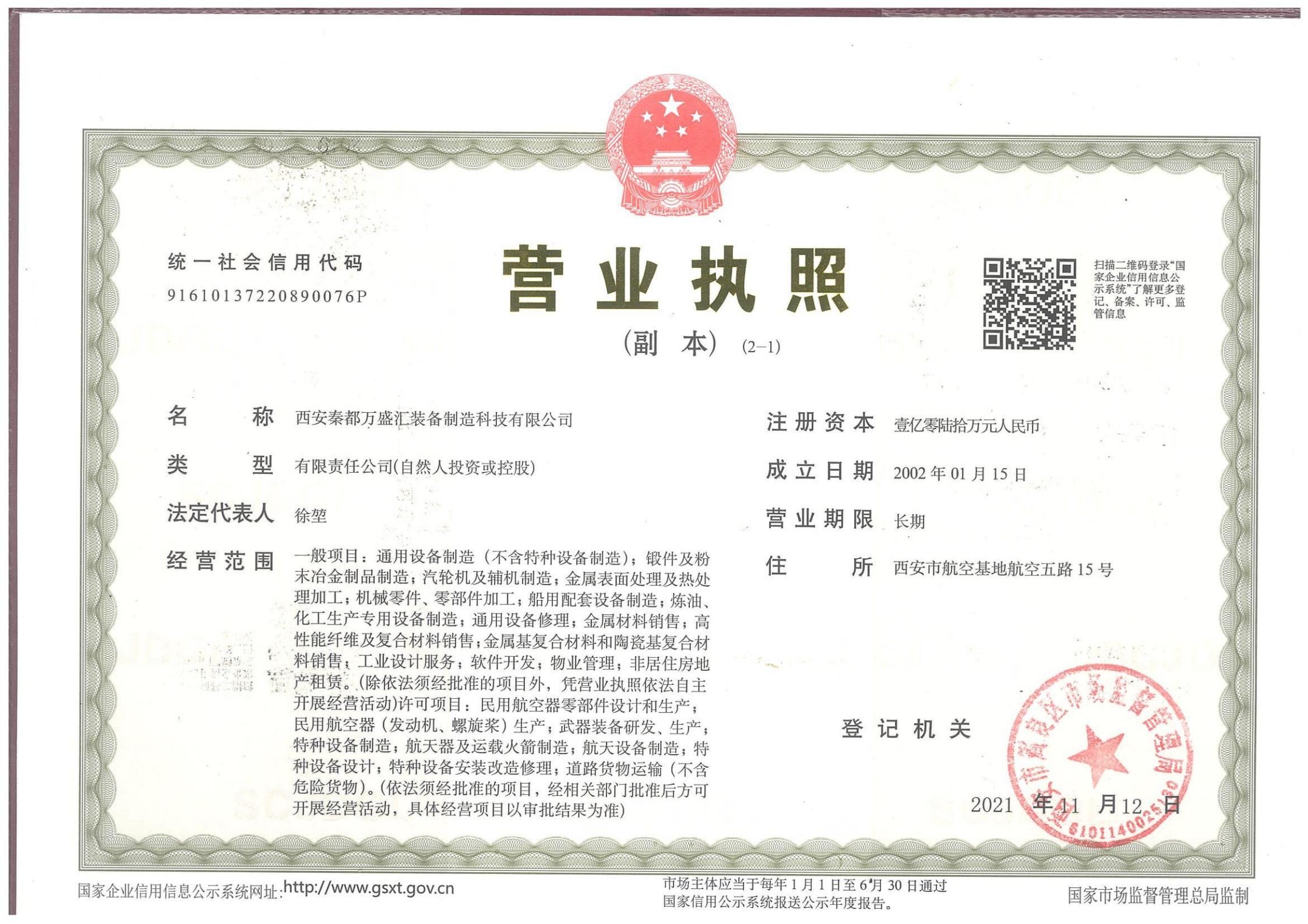 注册地址:陕西 西安市
