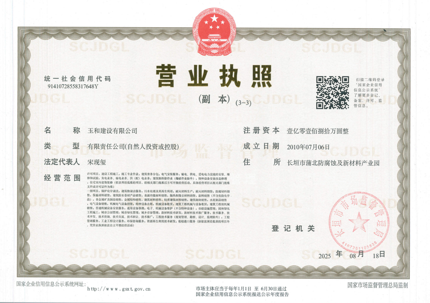 玉和建设有限公司前身为河南玉和新型节能建材有限公司,于2010年在河南省长垣市蒲北防腐蚀及新材料产业园改组成立,为满足企业多元化发展的需求,2017年5月17日采用现名称。公司毗邻新荷铁路、京港澳高速、大广高速、长济高速、连霍高速、省道308/213线等,地理位置优越,交通便利。公司以施工工程总承包为重点,防腐保温维修服务作为基础,炉窑砌筑施工、耐火炉衬设计、耐火衬里材料生产、新材料技术研发作为公司特色产业,从而成为集设计、生产、销售、施工和技术服务为一体的,专注于石油化工、电力、冶金等高温行业新型节能建设的科技公司。