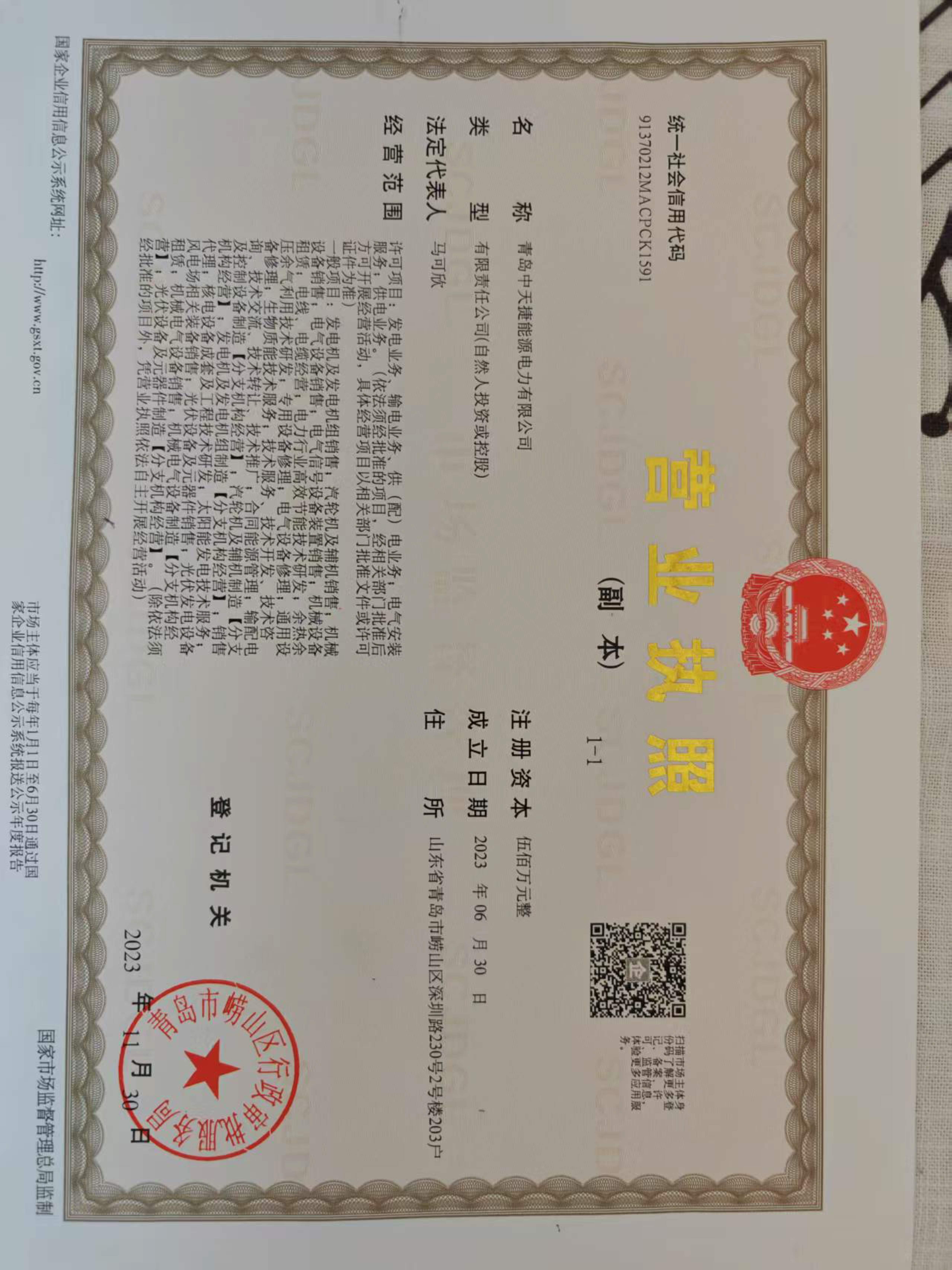 | 公司名称 | 青岛中天捷能源电力有限公司 | 公司简称 | 青岛中天捷能源电力有限公司 | 公司网址 | |