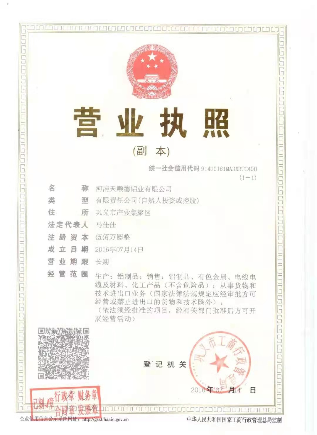 注册地址:河南 郑州市 巩义市