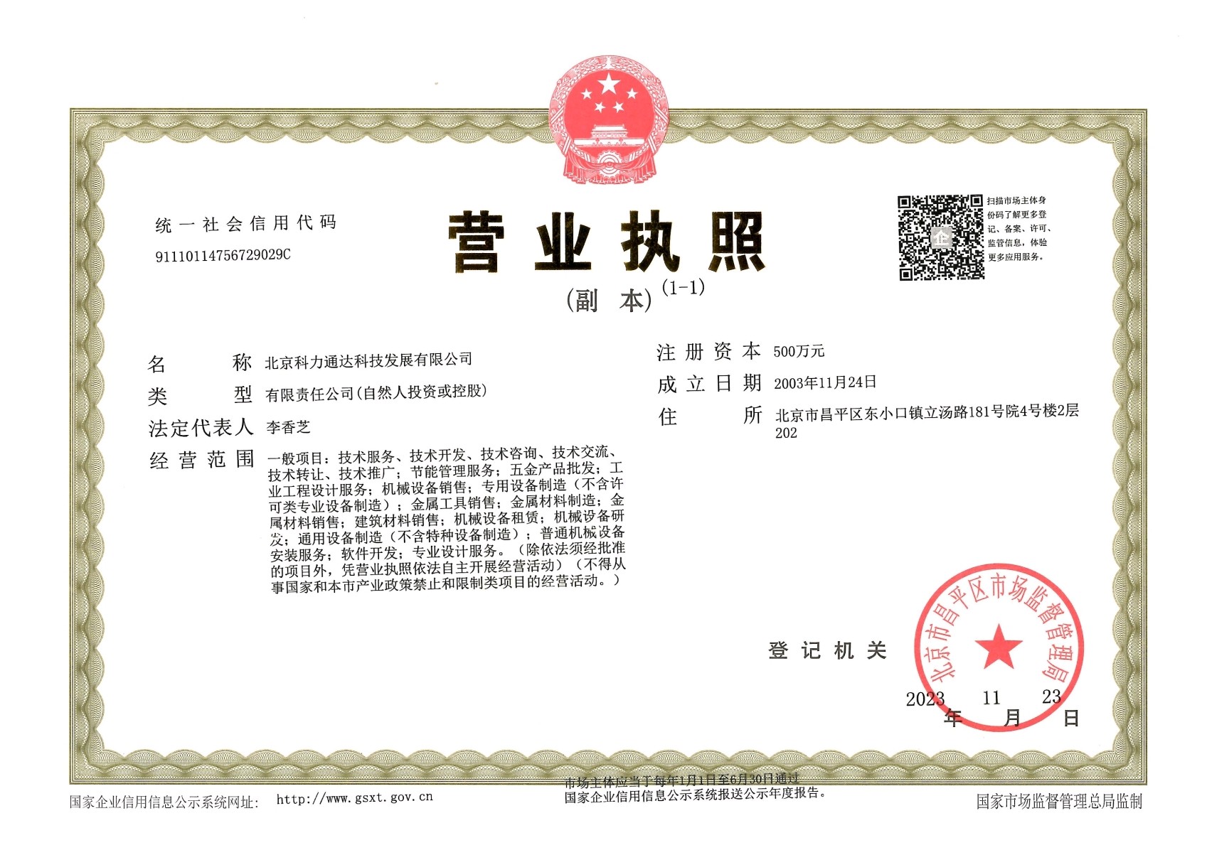 注册地址:北京