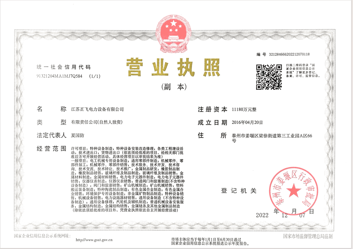 | 公司名称 | 江苏正飞电力设备有限公司 | 公司简称 | 江苏正飞电力设备有限公司 | 公司网址 | |