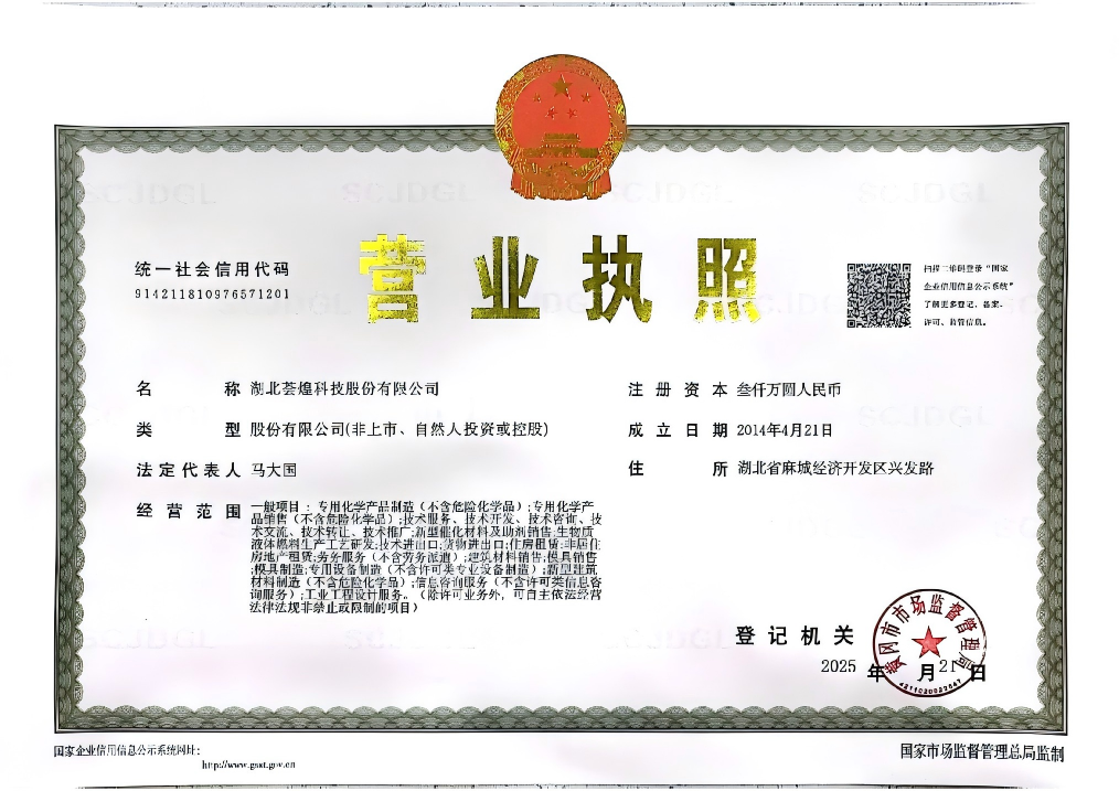 湖北荟煌科技股份有限公司始建于2014年,位于“中国菊花之乡、中国茶油之乡、中国板栗之乡、中国花岗石之乡” 的湖北省麻城市经济开发区兴发路,2017年9月因股份制改造,由有限责任公司变更为股份有限公司。