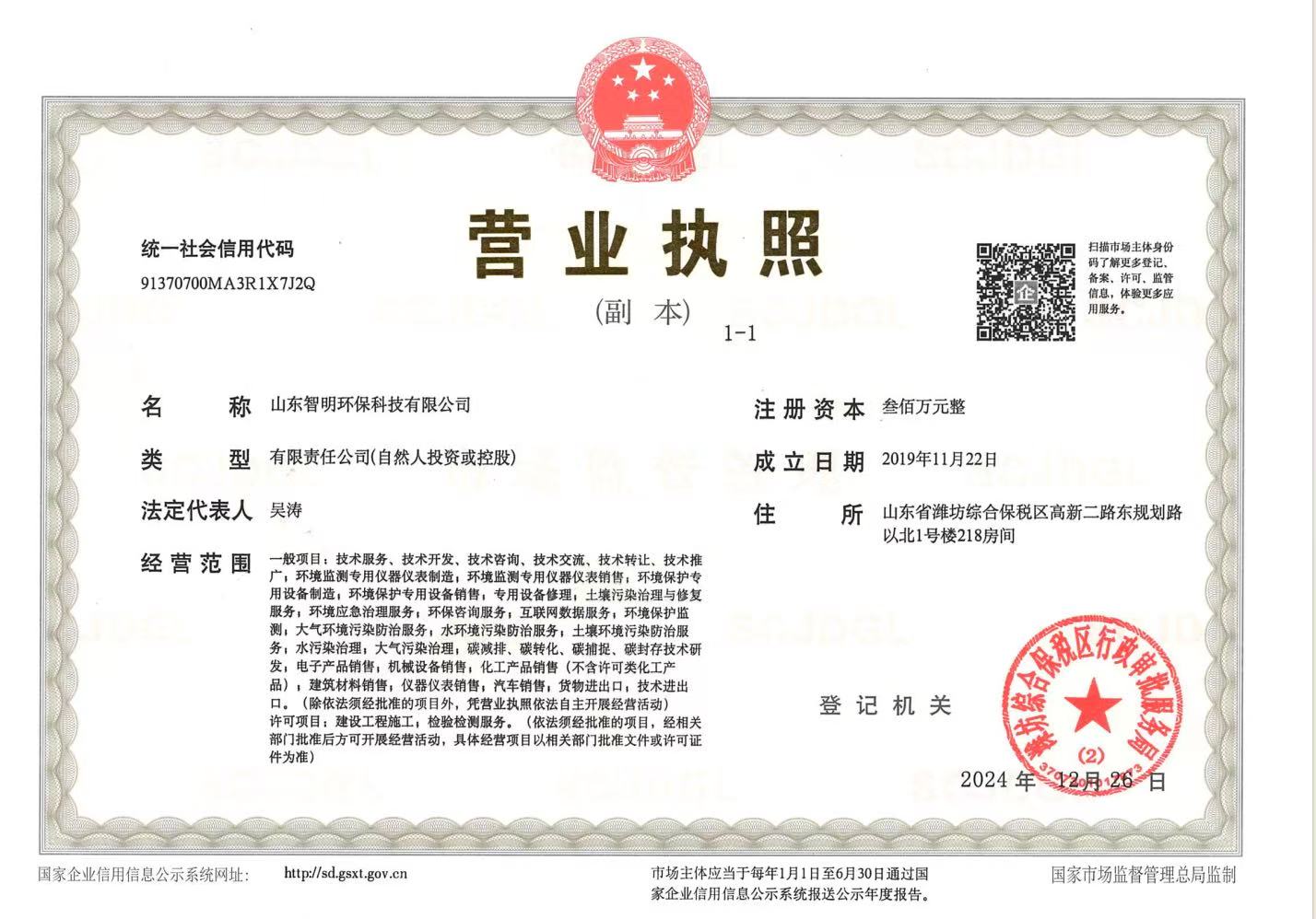 | 注册地址 | 山东 潍坊市 高新技术产业开发区 | 法定代表人 | 吴涛 | 注册资本 | 300万人民币 |